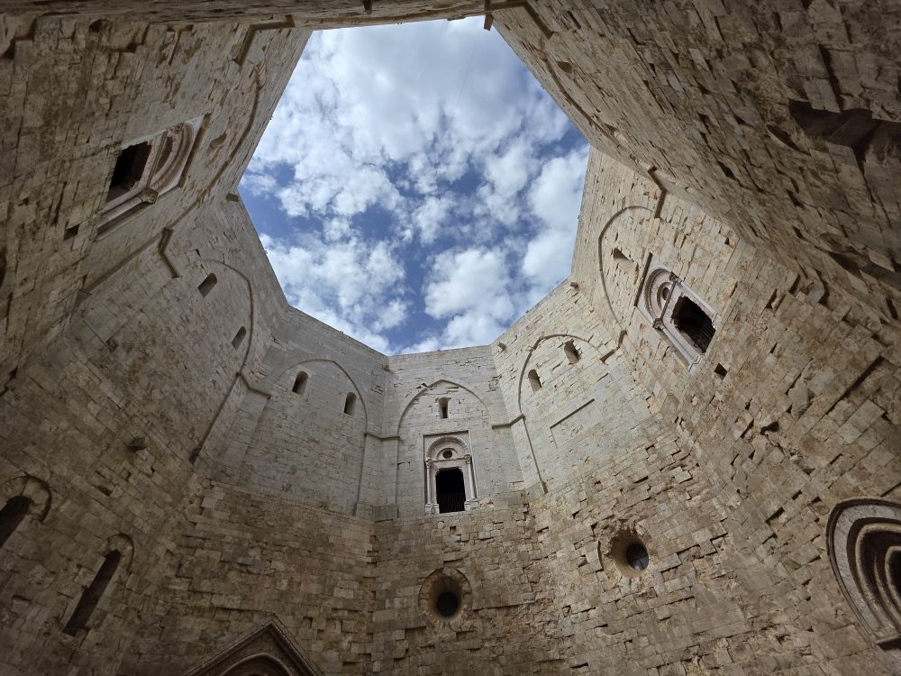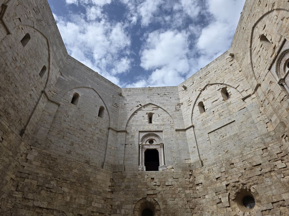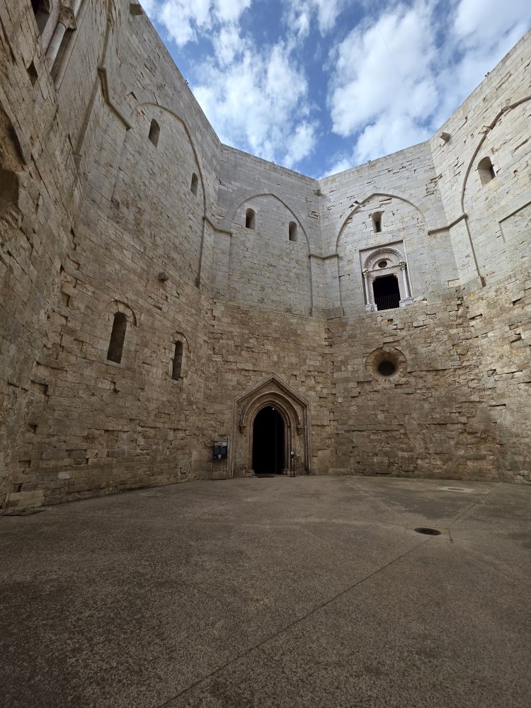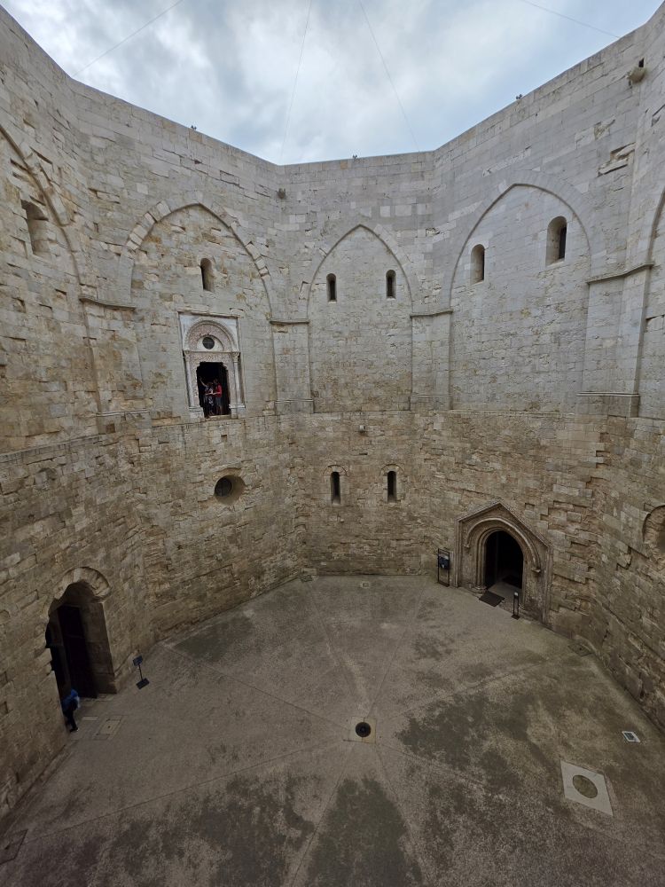 The trail ends at the visitor info center and a souvenir stand where the shuttle bus from the lower lot lets off. Ay yi yi! There are loads of people and loads of tours! Eek. We speed walk up to the castle, managing to beat them all, then speed tour through the place. Built in 1266 by the aforementioned Emperor, the castle is a massive octagonal shape with 2 floors, 8 towers and 16 rooms on 2 floors, standing 1800 feet above sea level, and visible from the water. Built from local limestone, the castle has served as a strategic military outpost, a focal point of communications between Frederick’s other castles, a prison for “illustrious” prisoners as well as a residence for the royals. Unfortunately, as is the case with many of these edifices, the interior has been looted over the centuries, leaving only a fraction of its decorations and marble and mosaic floors. It is a gorgeous structure, nonetheless, and even on a speed tour, totally impressive and amazing.