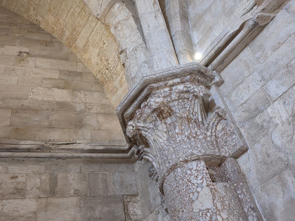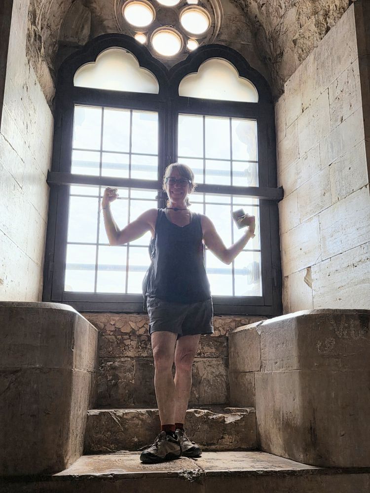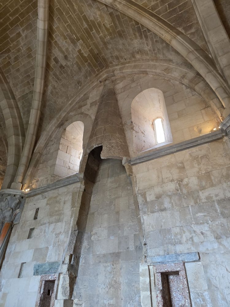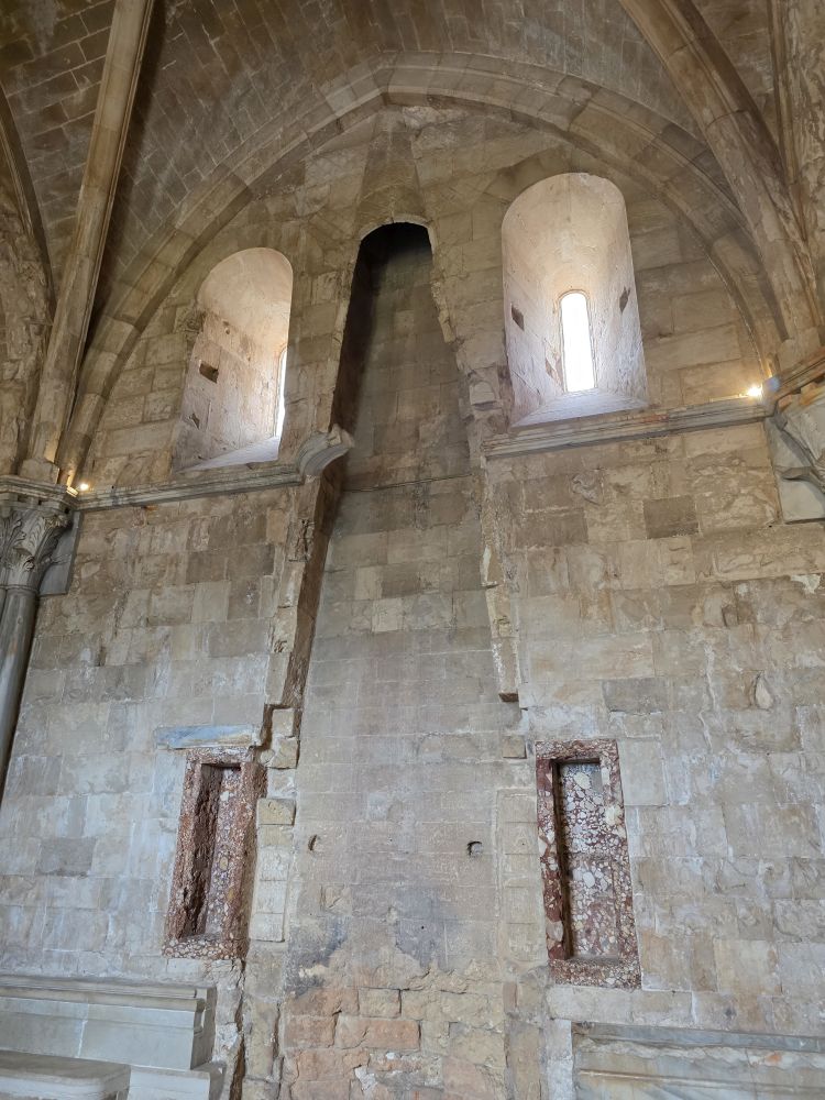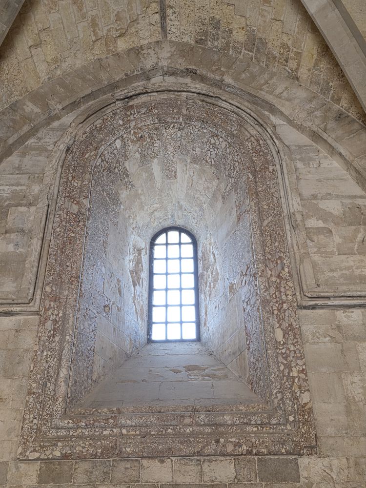 The trail ends at the visitor info center and a souvenir stand where the shuttle bus from the lower lot lets off. Ay yi yi! There are loads of people and loads of tours! Eek. We speed walk up to the castle, managing to beat them all, then speed tour through the place. Built in 1266 by the aforementioned Emperor, the castle is a massive octagonal shape with 2 floors, 8 towers and 16 rooms on 2 floors, standing 1800 feet above sea level, and visible from the water. Built from local limestone, the castle has served as a strategic military outpost, a focal point of communications between Frederick’s other castles, a prison for “illustrious” prisoners as well as a residence for the royals. Unfortunately, as is the case with many of these edifices, the interior has been looted over the centuries, leaving only a fraction of its decorations and marble and mosaic floors. It is a gorgeous structure, nonetheless, and even on a speed tour, totally impressive and amazing.