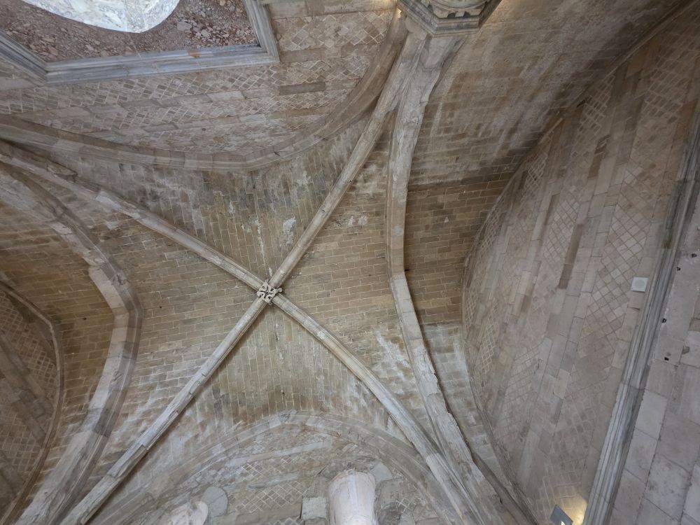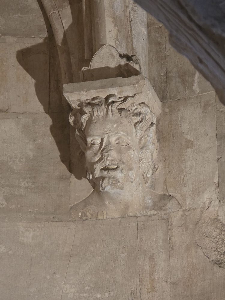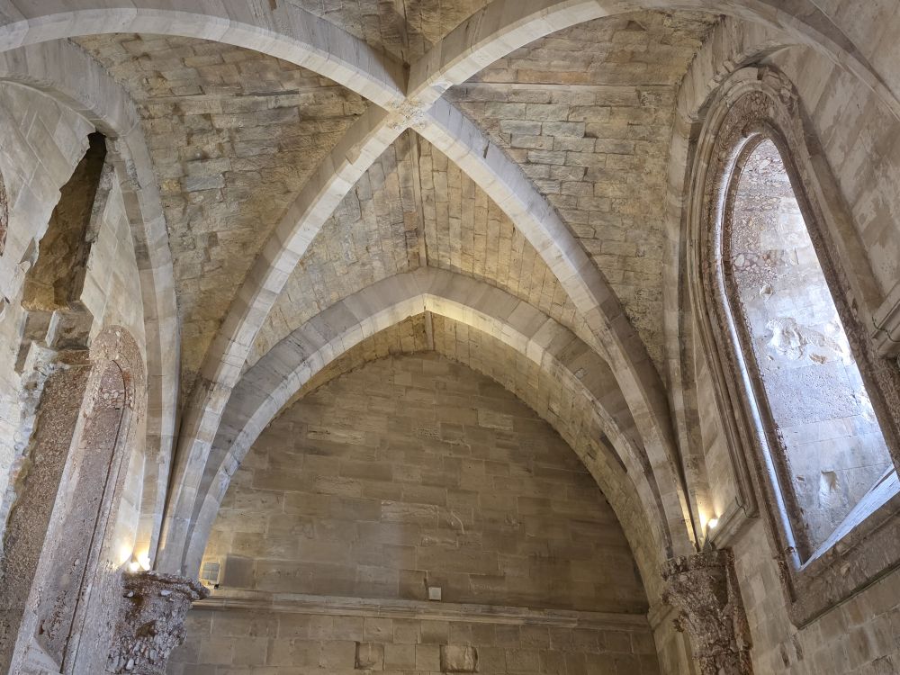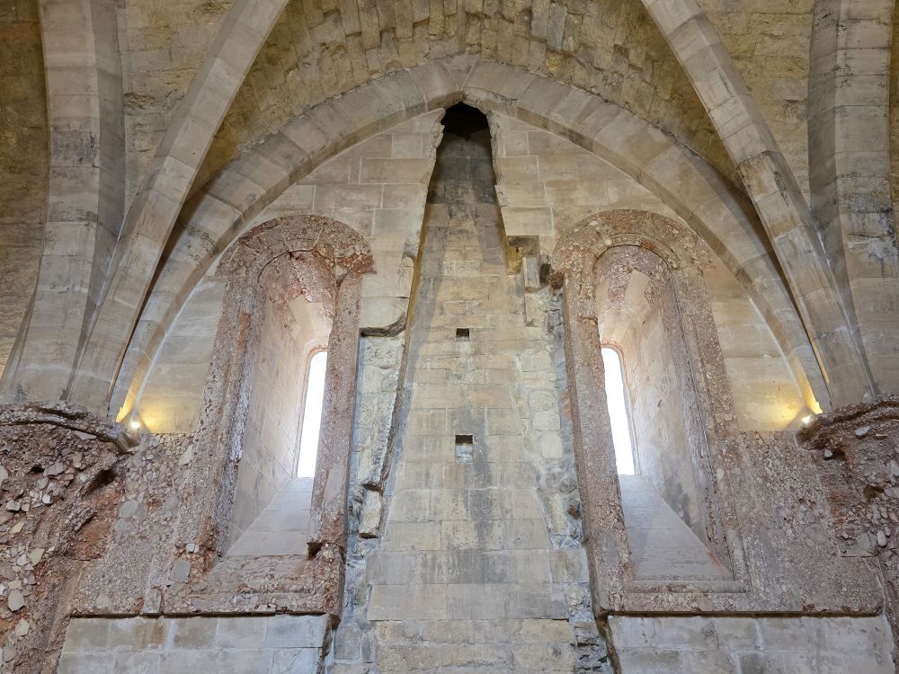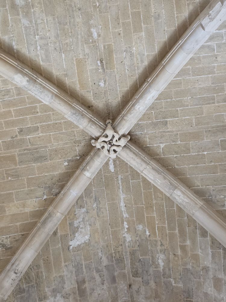 Moving up the spiral staircase to the first level, we meander about all the different rooms, perusing the signage, learning about the different keystones that sit in the center of the cross vaults. And take loads of pictures of stunning views across the countryside and what is left of the decorations and stonework.