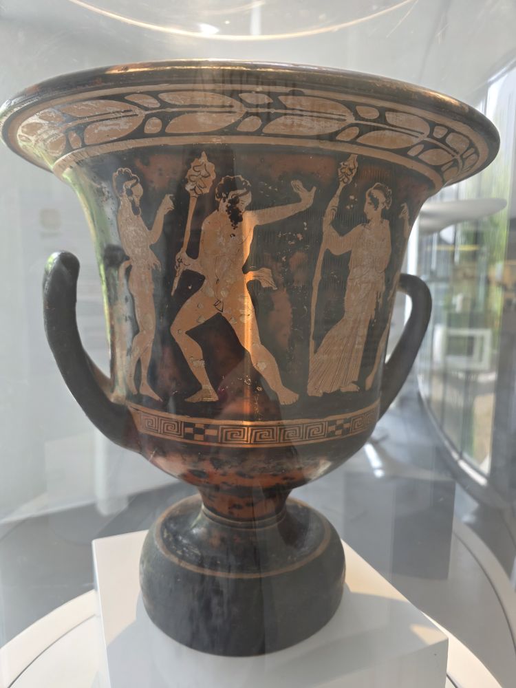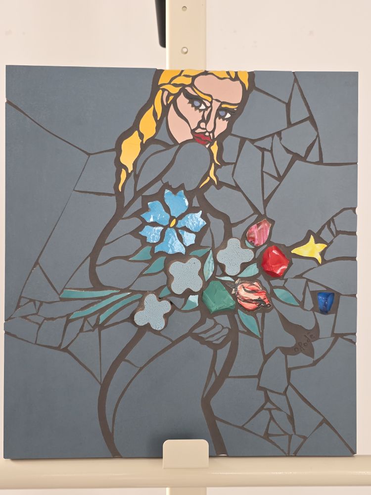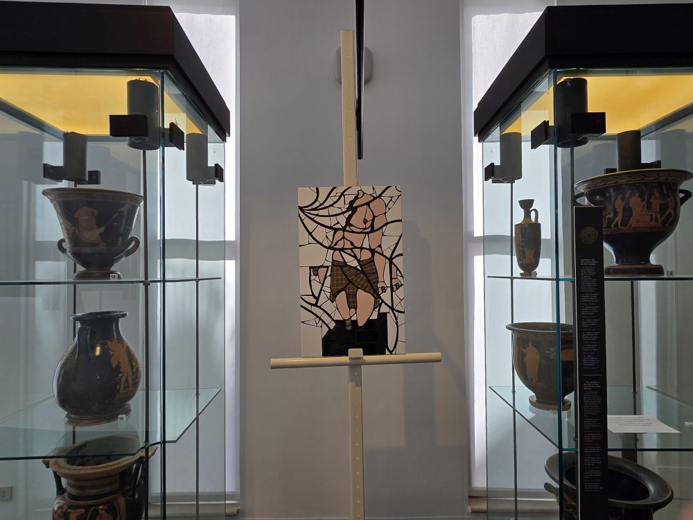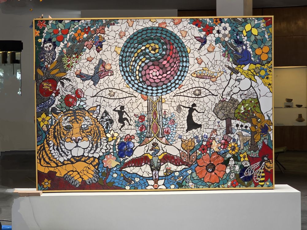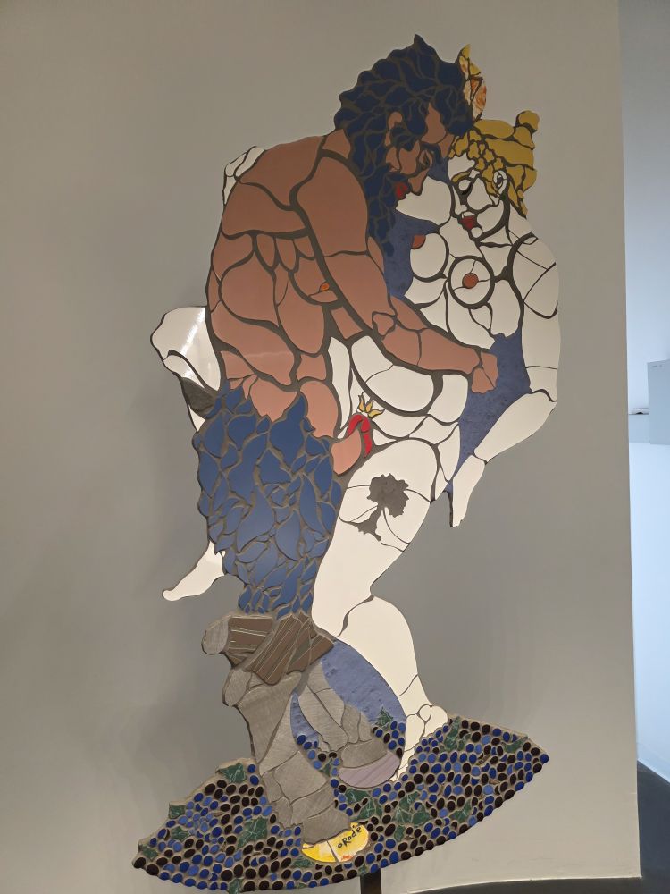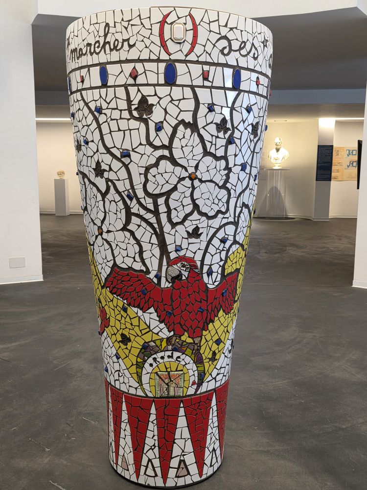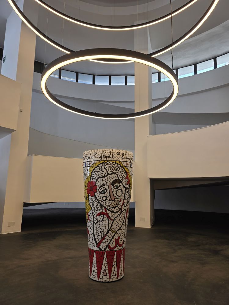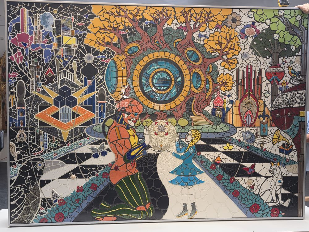 All throughout the museum, they are installing a temporary exhibition of very modern works juxtaposed against the ancient relics held in their showcases. Modern mosaics in between Egyptian pottery. A huge mosaic vase in the lobby area. A two sided mosaic panel depicting a nature scene on one side, a dystopian Wizard of Oz scene with Dorothy and an alien (or robot) on the other in the center of the room that holds a huge religious iconograph depicting saints. Very well done.