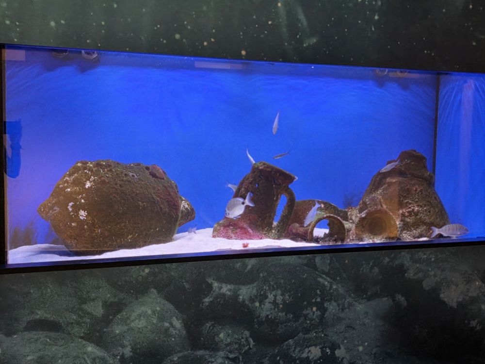 This place is great – and not to mention free. Displays of 1st C pottery, wine and olive oil vessels from different shipwrecks across the region and centuries, meaning 2C BC to 2 C AD. Ancient Egyptian vases and pottery found in the Salento caves. Two aquarium tanks filled with fish and archeological finds, a representation of the relationship between humans and nature. Really well thought out.