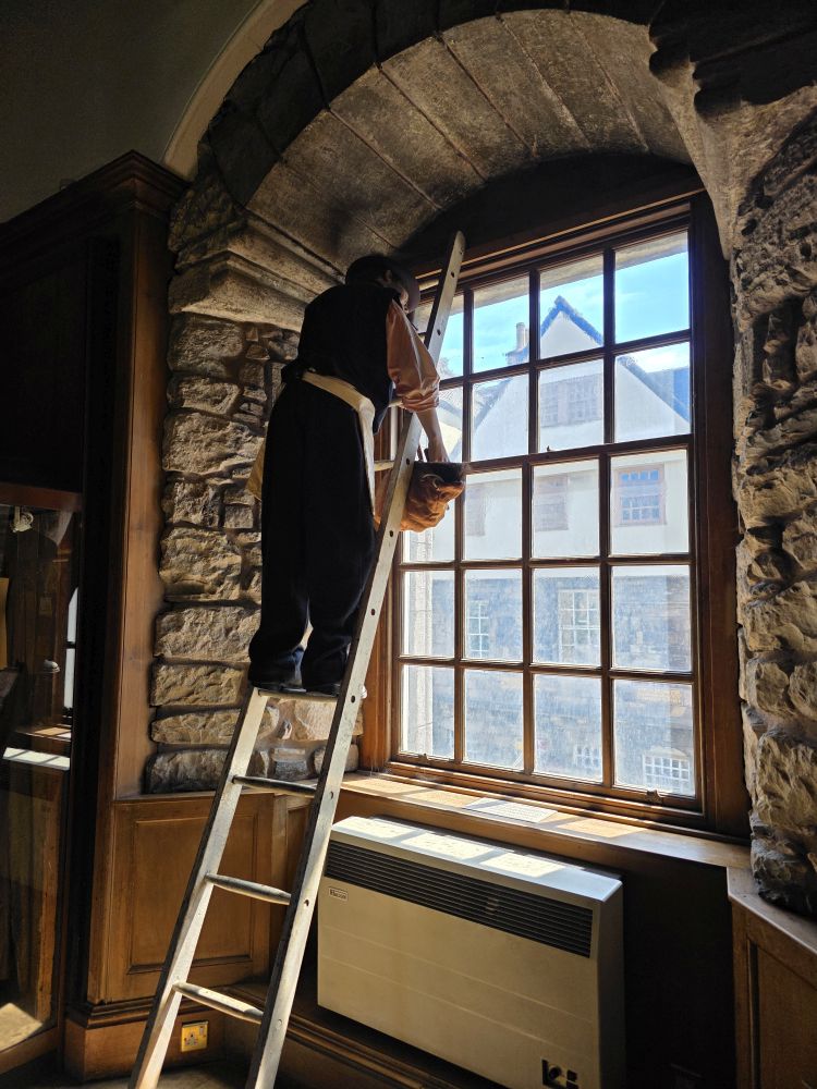 Across the street from the City Museum is the People’s Museum. Housed in the old Canongate Tollbooth (circa 1591), the museum tells the story of ordinary working people – through their own words as written and taken form oral histories – and recreates scenes of daily life, from the jail cell to a wartime kitchen to a bookbinder’s workshop. A nice bookend to the overview of the city across the street.