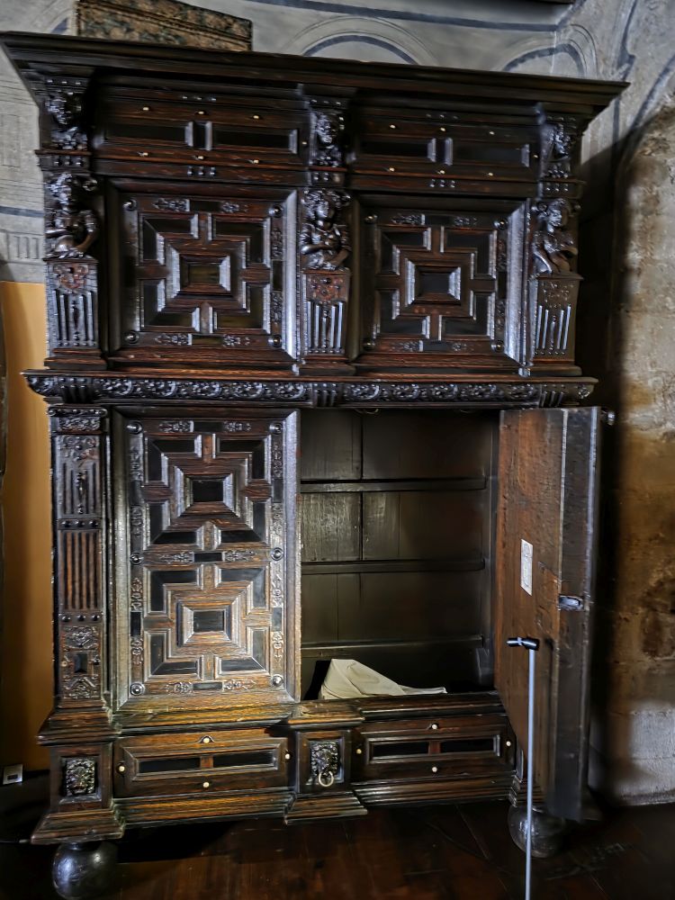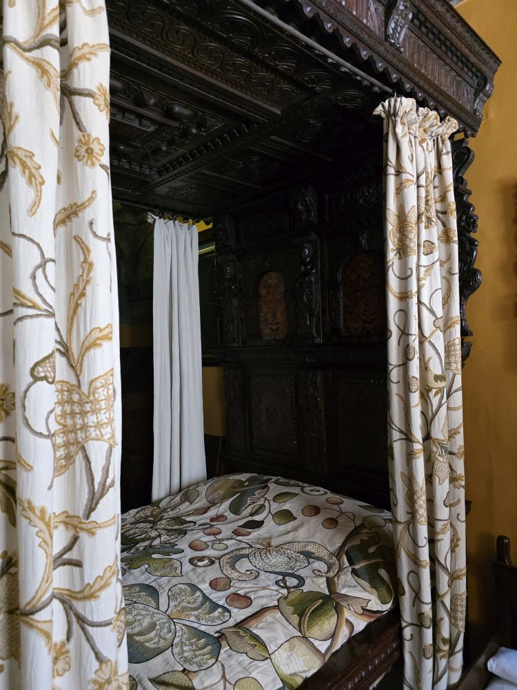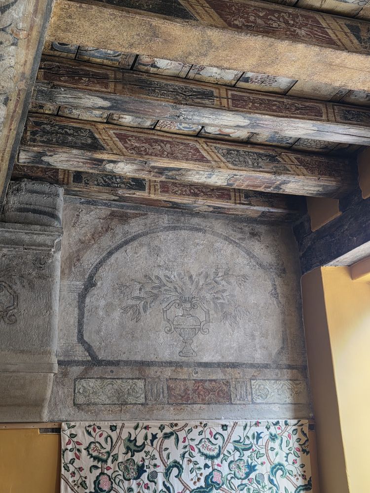The 1st floor is reminiscent of the early 17th century when a wealthy merchant owned the building and ran his shop on the ground level. Here there is a four poster bed, more painted ceilings, but also painted walls – frescoes found on the walls after wood paneling was removed. Wild! There is also a small little chapel like area, an office of sorts and a full kitchen, complete with servants’ quarters, i.e., a bed in the kitchen!
