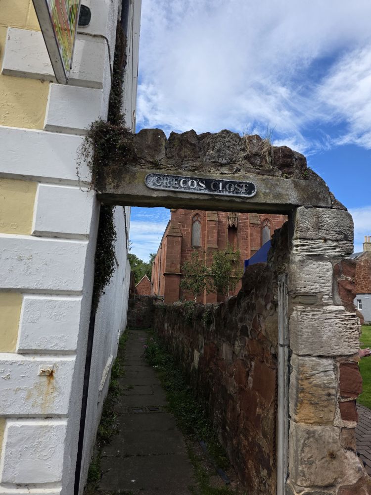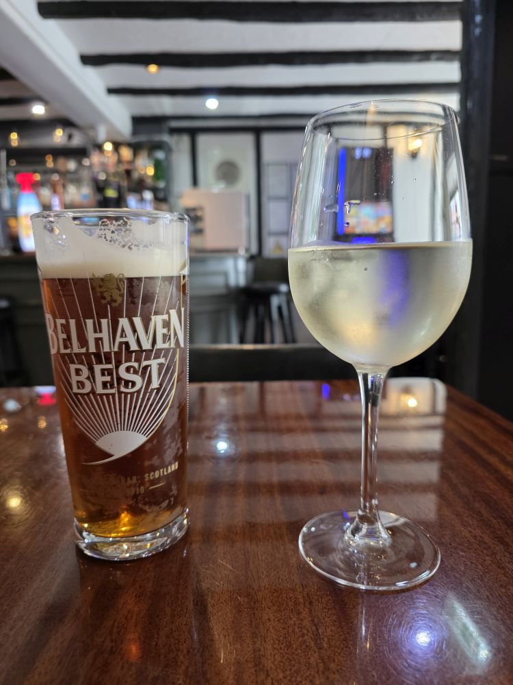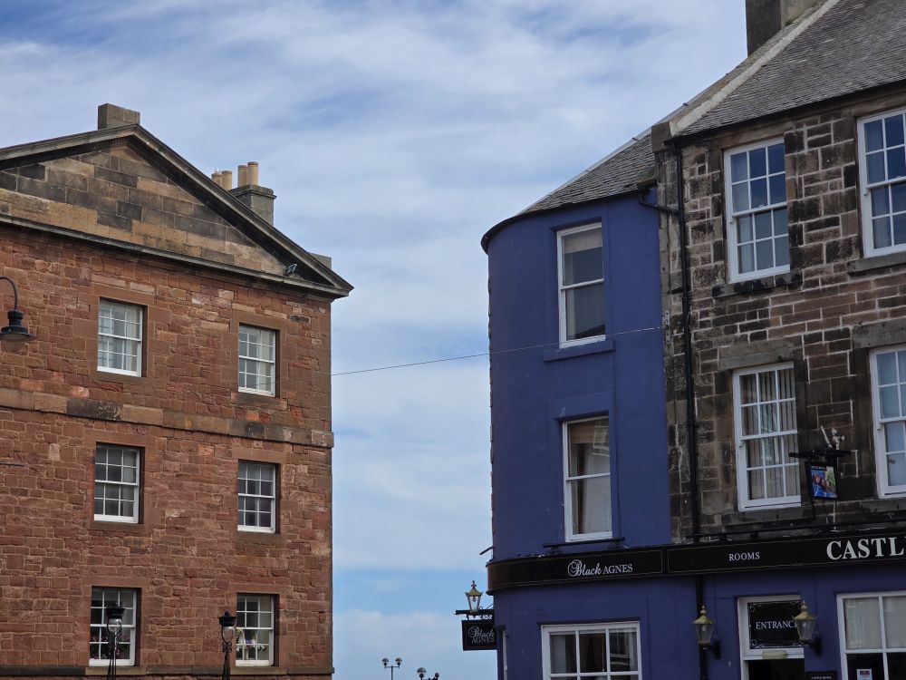 A quick walk finds us back on Main street in town, with plenty of time to kill before our evening train. Making a fairly quick stop at the Dunbar Town House museum and gallery – a nice gallery with local art – we then plop down at the Eagle Inn, a lovely local place, for an afternoon beer and wine. Here, as opposed to across the street and The Bear and Bull, the bartender is a sweet doll who chats us up a storm, including suggestions for finding true Scottish shortbread that my mom’s friend has said we must have. After our drinks, we head down the Crunchy Carrot, right past the Tipsy Truffle (gotta love these names!) for some real, to find said local Shortbread. And lo and behold, there it was right on the counter, locally made, looking all the world like the same packaging as the original Asheville Pretzels! Definitely local – and decidedly excellent, not like commercial store bought shortbread. Yum.