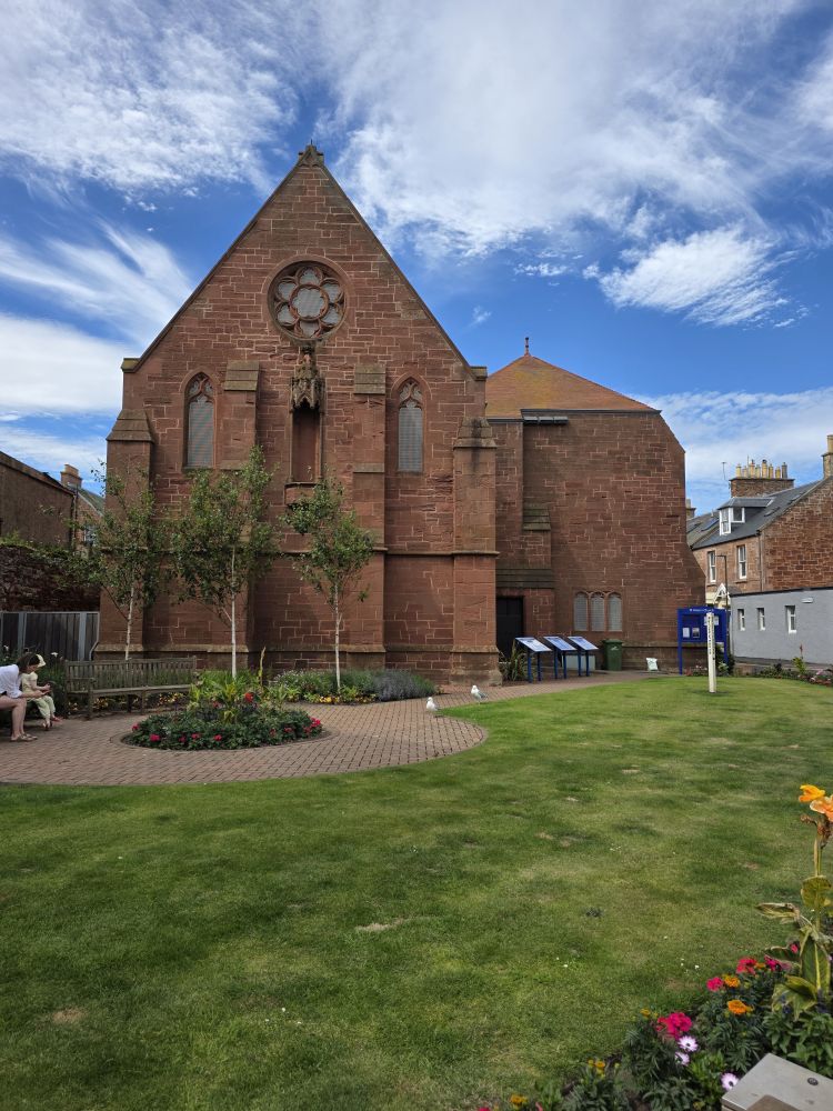 Well worth the visit and the time. On our way out we buy a booklet that details John Muir’s Clifftop trail – a perfect purchase as we plan to walk the trail after lunch. Which is on the horizon – but first a stroll through the still quite town, loving the architecture and the smalltown feel that is so typically Scotland. Heading down a lovely wide residential lane, we pass the 100-year commemoration flower logo for Dunbar United FC (of course, its football!!) and lots of lovely houses, including one with an obvious overabundance of bird feeders judging from the literally 100’s of birds perched on the roof and around the garden, on our way to Brewery lane and the Belhaven Brewery. Can’t miss the local brewery!