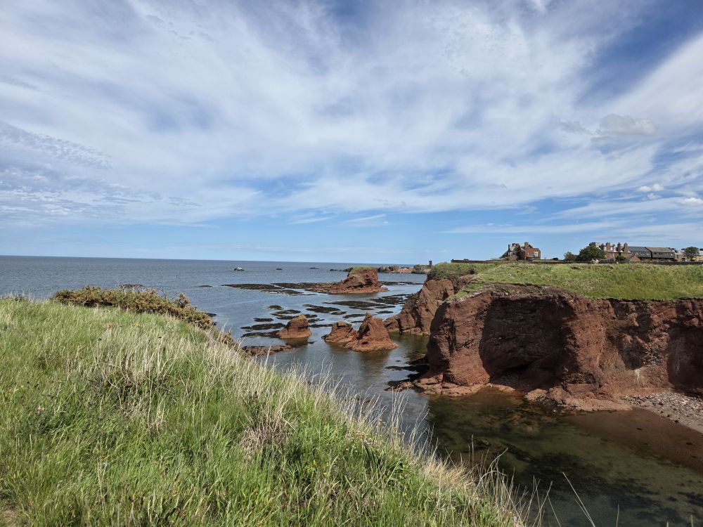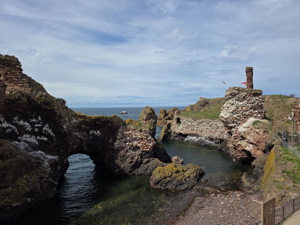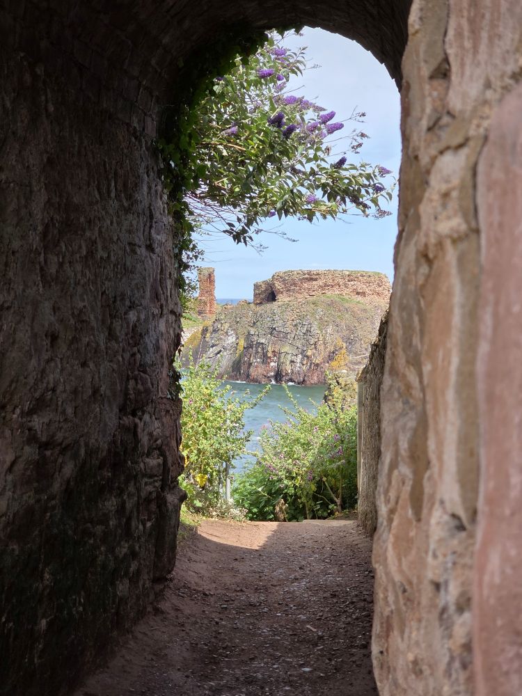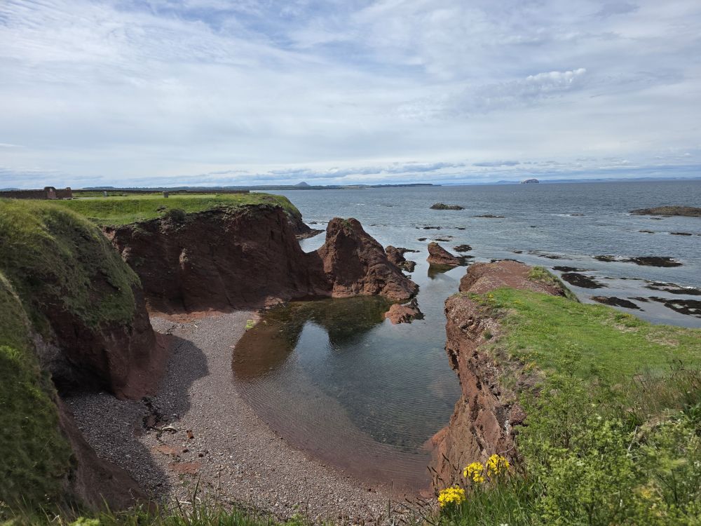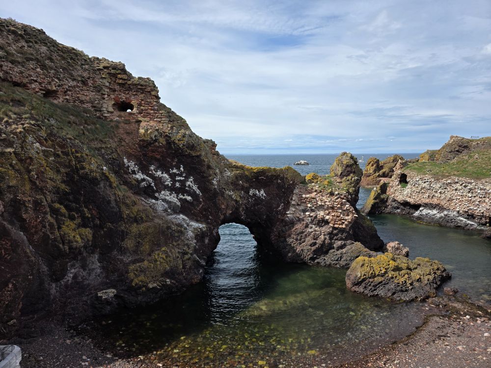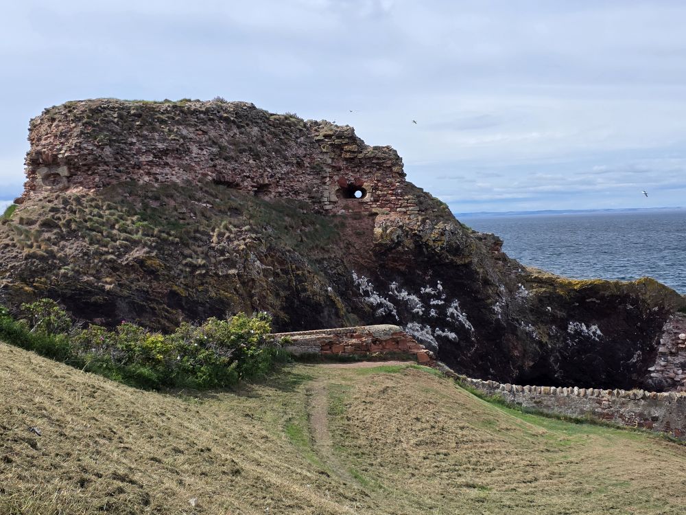 The castle ruins are amazing – with an amazing history to boot. Fortified for over 1,000 years, the castle was burned in 1214, defended against the English by Black Agnes, and used as a shelter by Mary, Queen of Scots, after the murder of David Rizzio – Mary’s secretary and possibly lover – at Holyroodhouse in 1566.The Scottish Parliament ordered the castle be demolished after that as it was too convenient a stronghold for enemies of the ruling powers. Now it is just incredible to look at the remaining stonework and the erosion that has caused holes in the shoreline and the collapse of what was once a large arch over the water where John Muir and his friends used to play ancient warriors.
