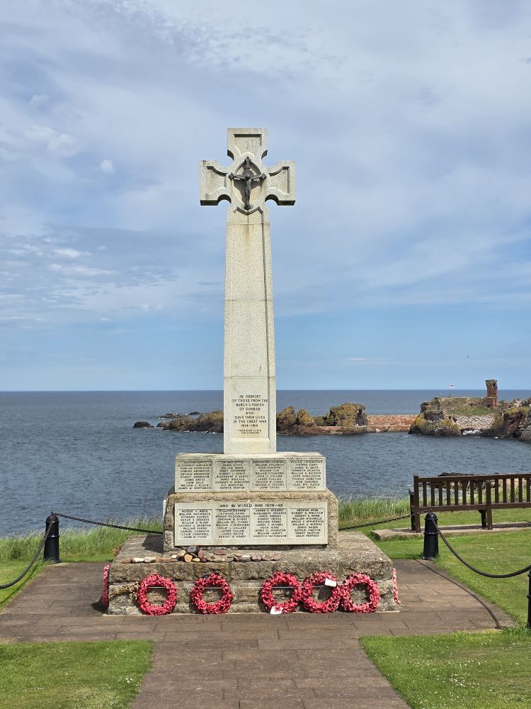 In addition to the scenic views, there are also war memorials placed here and there. One looks like a bizarre upside-down concrete thimble that has a navigational star on the top pointing out directions and measurements to various cities across the islands. Another, closer to the main harbor, is of typical design, built out of “Dunbar Marble,” blocks of local limestone, with the names of all those lost in the Wars inscribed on the base. It was originally erected in 1921 and placed on a rocky outcrop closer to the water, but erosion forced the relocation to this location in the 1980s.