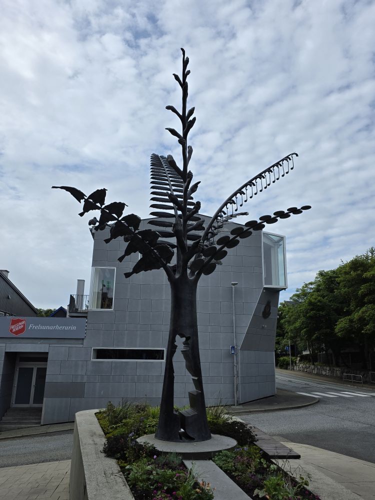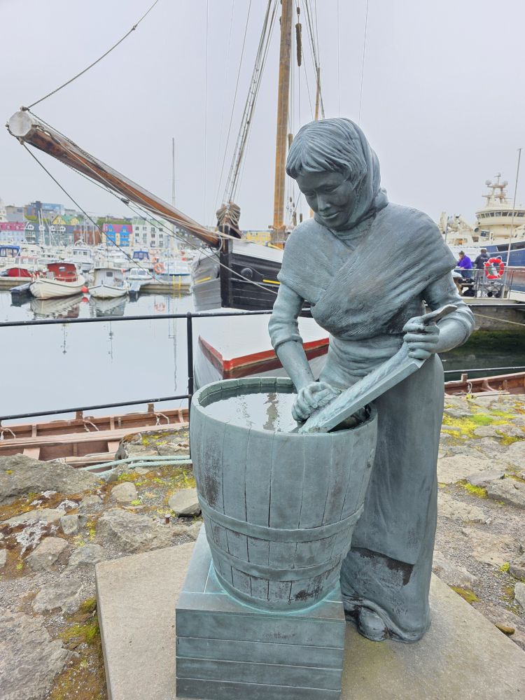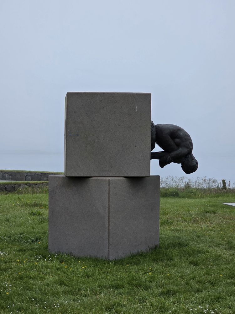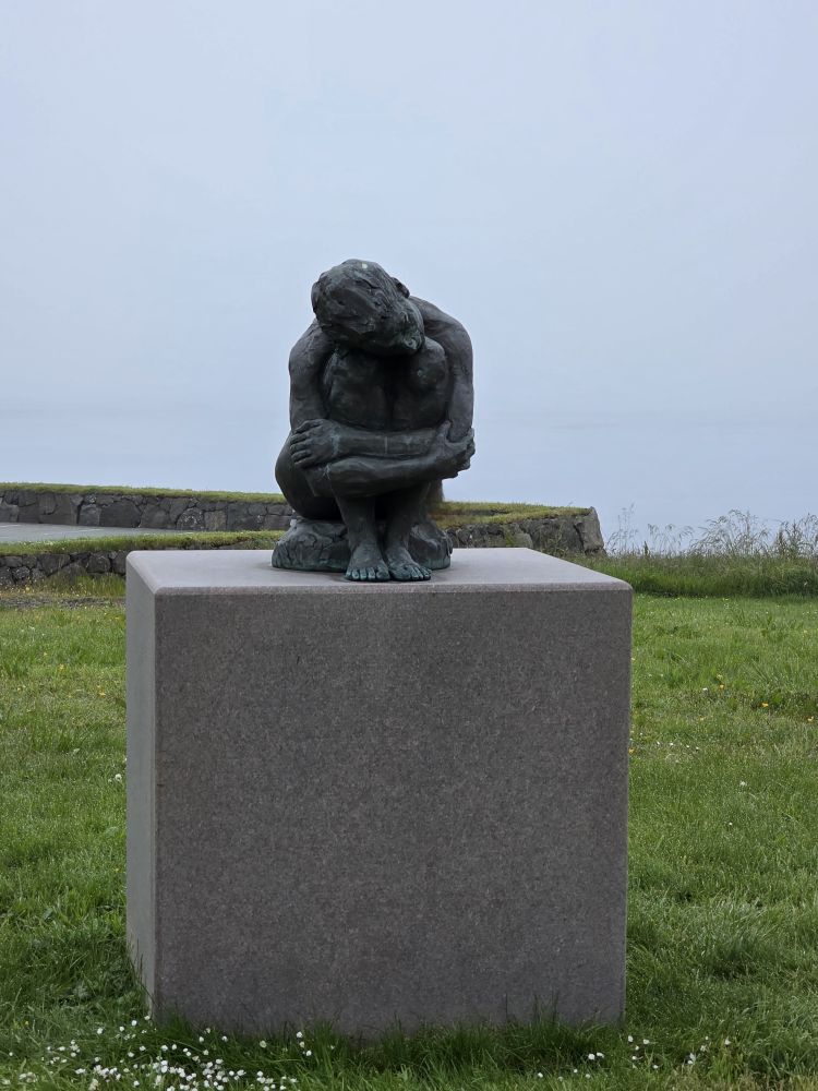 Next to the Fort, we find a bizarre sculpture entitled Fia og Frida, an abstract and surreal look at the relationship of the body to space. It was created by the same sculptor who made the Seal Woman statue on Kalsoy island, Hans Pauli Olsen. Strange, but art is art.