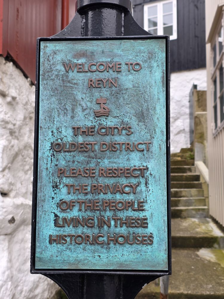 Then it is onto Reyn, the city’s oldest district, entering by one of the signs asking visitors to respect the residents here. It is a relatively old sign, and we can only imagine the challenges of living here with all of us tourists wandering around snapping pictures – us included. It is a very picturesque area, situated between the two bays of Torshaven, with tons of history and pretty buildings that act as the boundary between old Torshaven and the more modern part of the town as it is today.