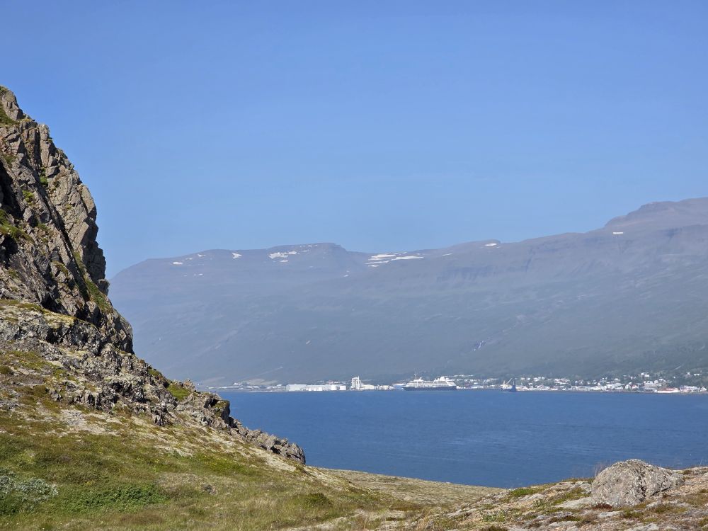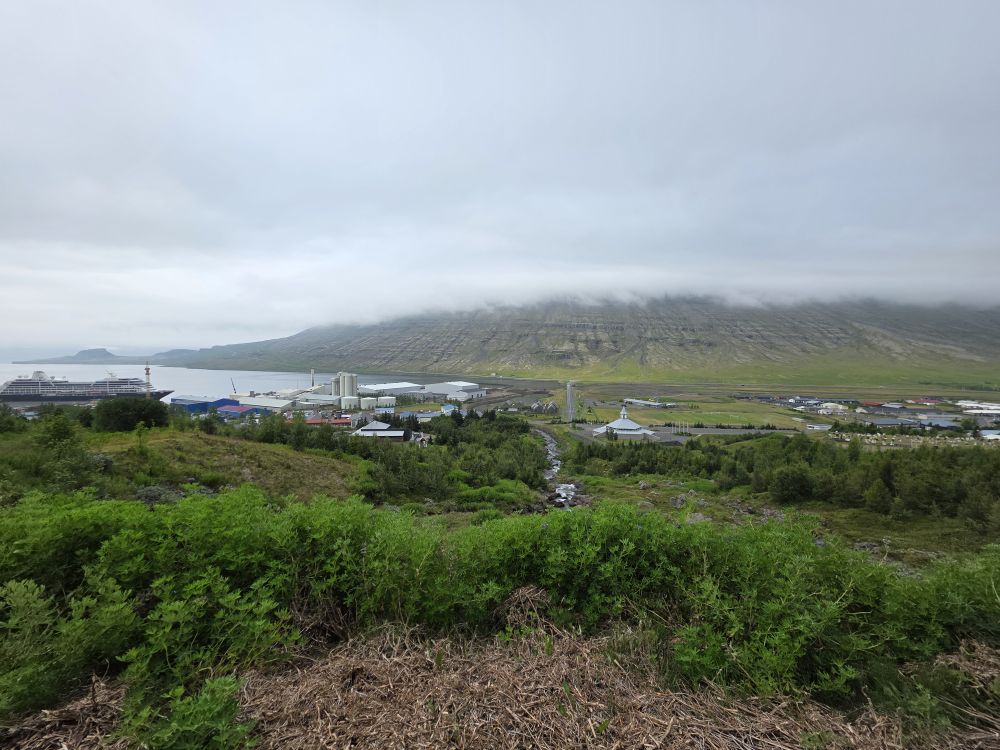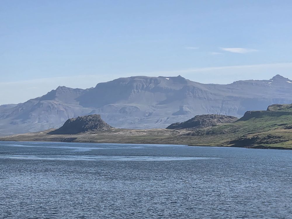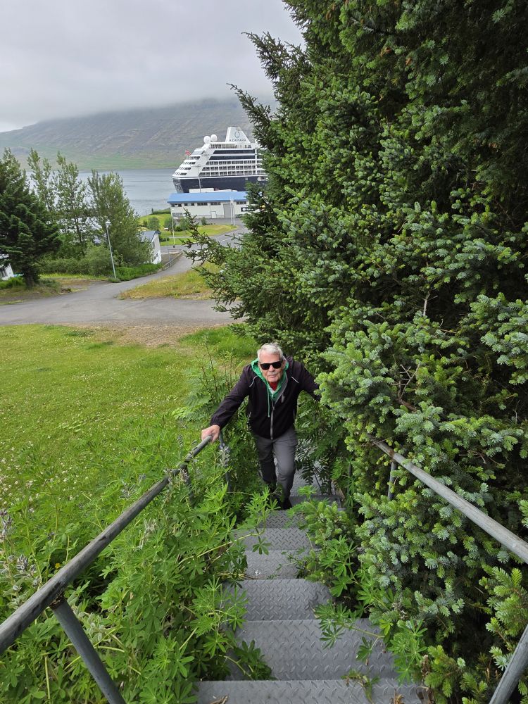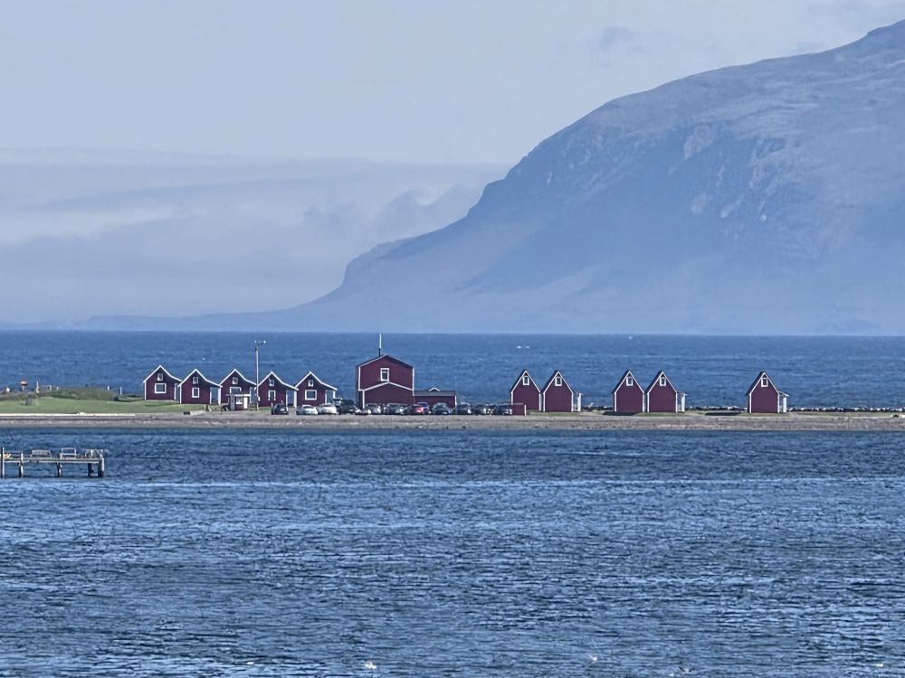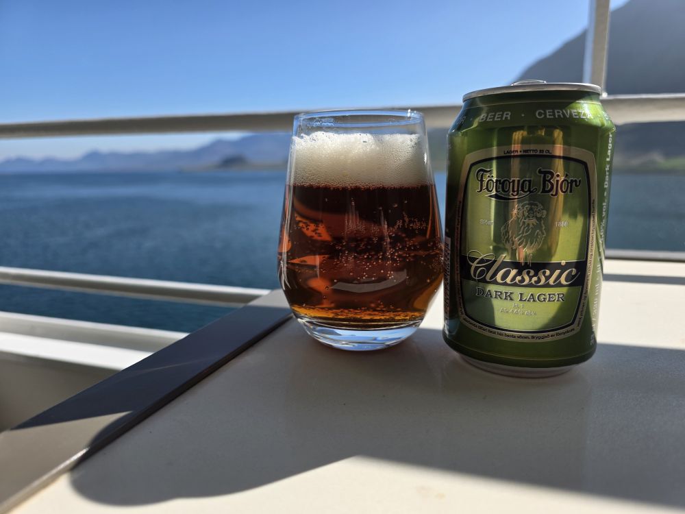 What a fantastic day in the sunshine here in Eskifjordur. Even though it is early, we’ve nothing else planned here, so Anna and our driver take us directly back to the ship where we happily spend the rest of the afternoon – and then the evening with our Faorese beer – on the balcony as we glide past the little town of Eskifjordur, the iconic red cottages on a spur of land jutting out into the Fjord (rental cottages Anna had told us) and into the Fjord itself as we head out into the evening.