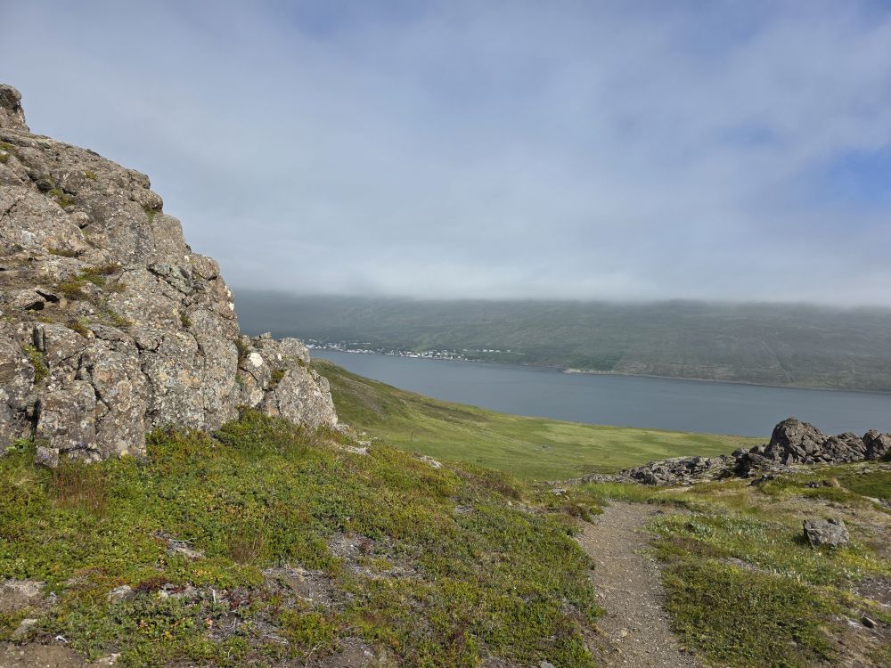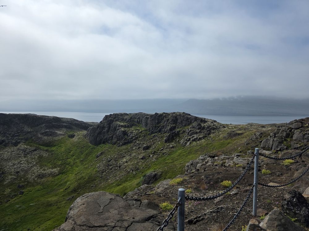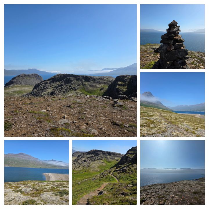 Walking along the little path, we rise and fall with the landscape, getting beautiful views of the Reyðarfjörður bay on both sides of the Holmanes peninsula – cut into the rocks by glaciers oh so many years ago. We learn all about different flowers here, how the moss, which grows in abundance here, doesn’t take water from the soil, but from the fog and rain and many other little flora tidbits too numerous to repeat.