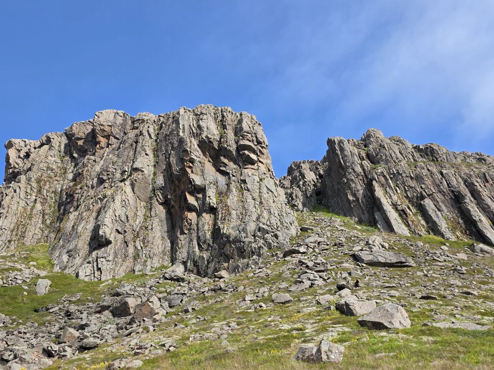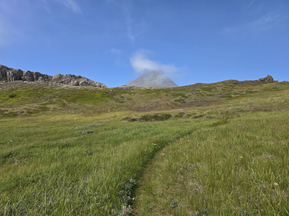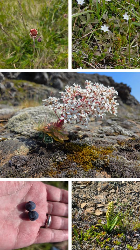 After our break, we continue our hike with more incredible scenery, views and amazing plant life – the white flowers Klettafrù flowers, also known as the Rock mistress or rose root and very rare, especially seeing it down here, at this low altitude, this early. They normally grow on top of high rocks up on Mt Holmatindur.
