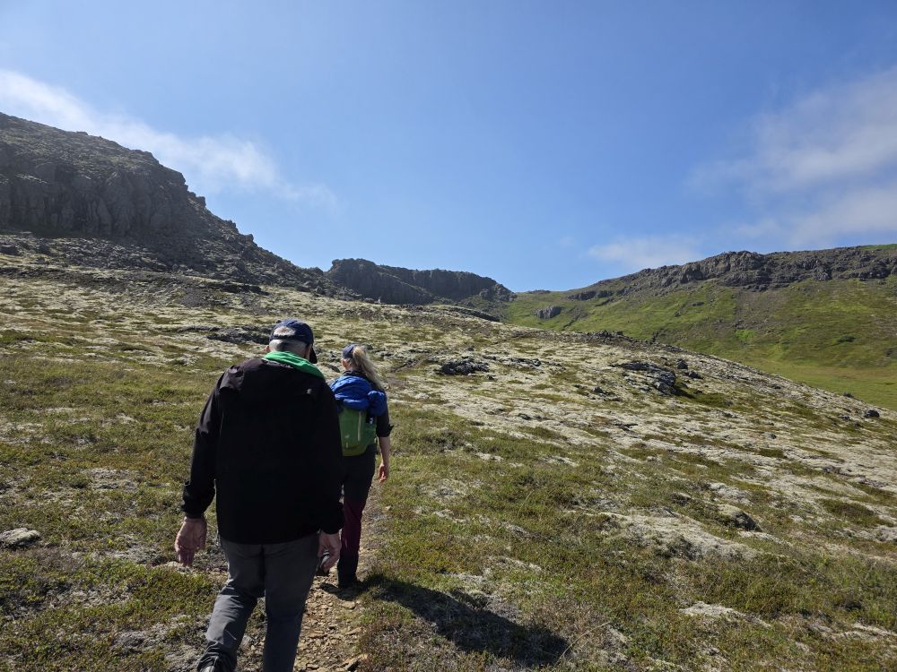 We learn all about Anna as we walk – married with grown sons and now grandchildren, she went back to school at 33 to get her degree in environmental science and is now a guide, a scientist, consultant and general expert on environmental issues here in Iceland. As we pass some large rocky outcrops, Anna regales us with stories from her youth when she believed (she actually sort of still does!) that Elves live in the rocks and she used to come here and talk to them.