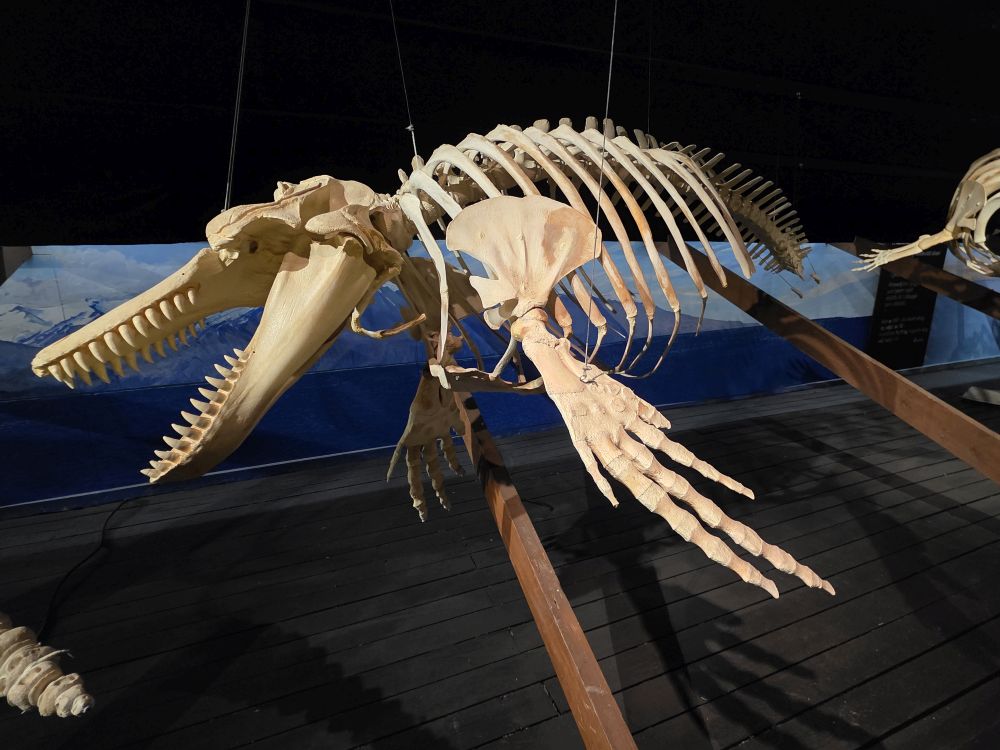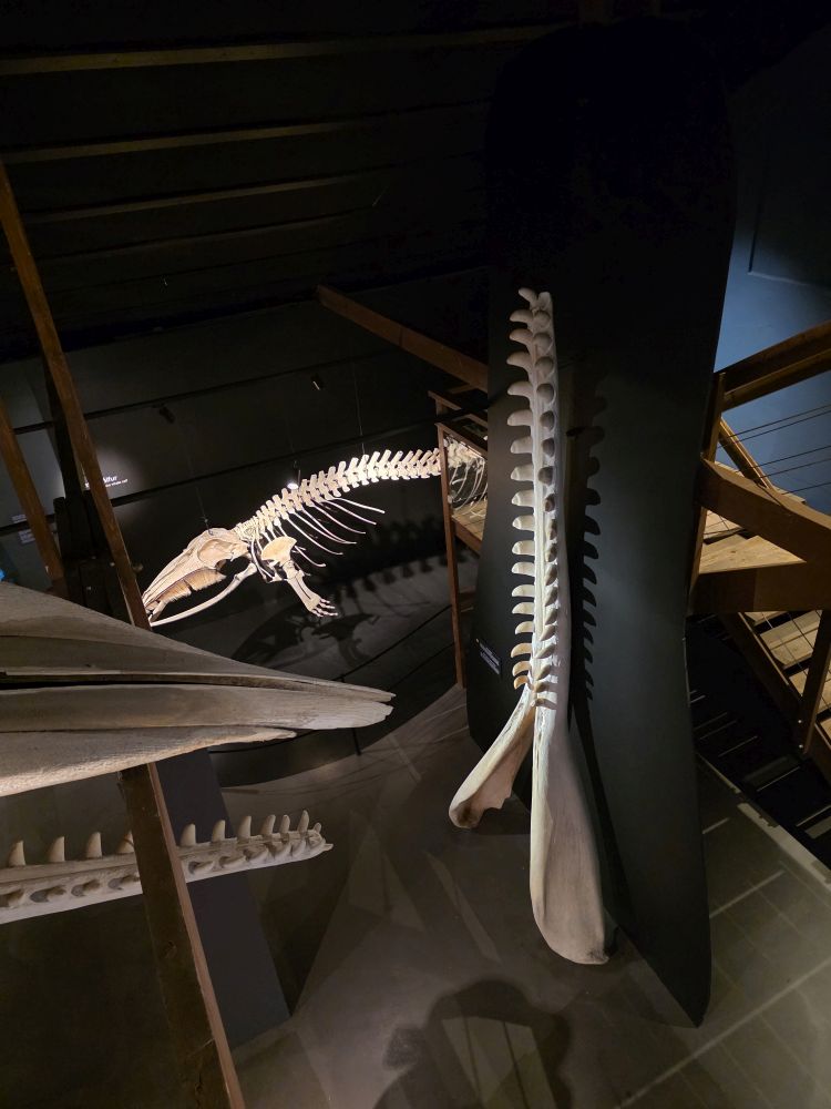 Skeletons of Minke Whales, Narwhals (so cool with that long, almost spear like feature that is actually a tooth), a baby humpback, an Orca, beaked whales, pilot whales – you name the whale – there’s a skeleton here for you!