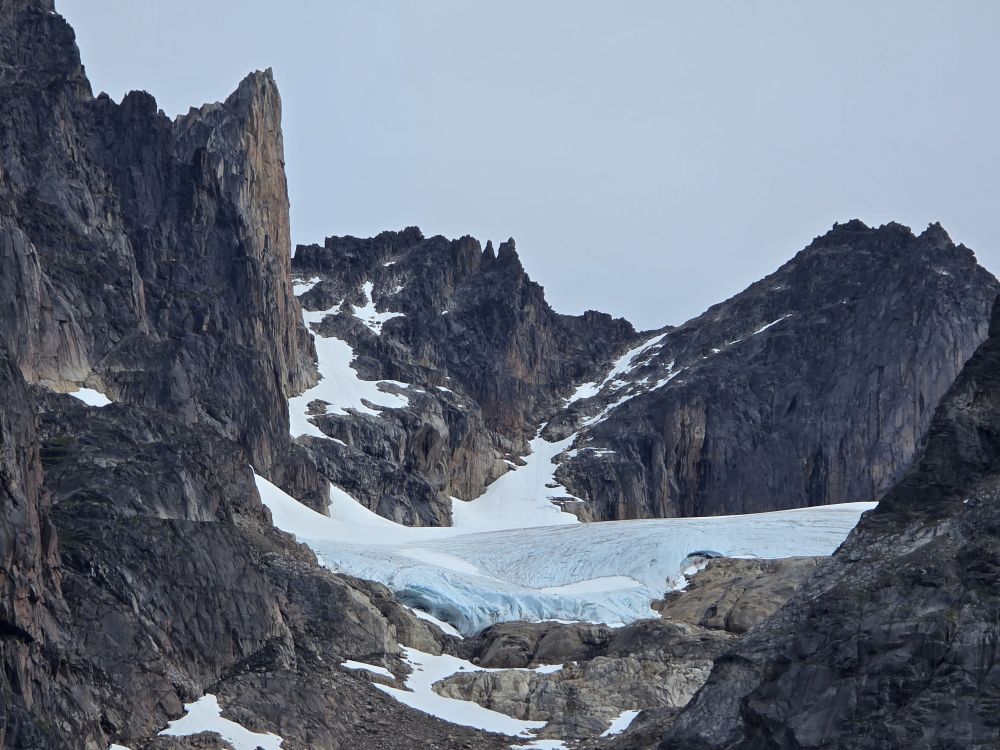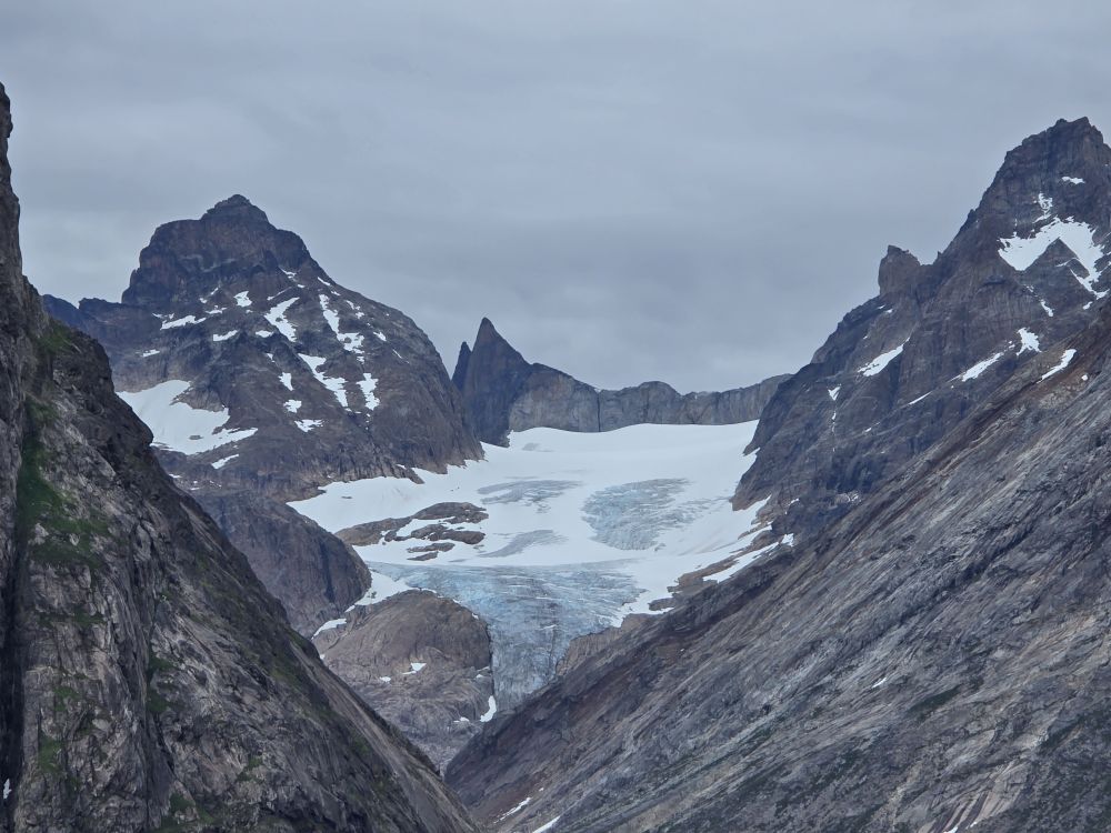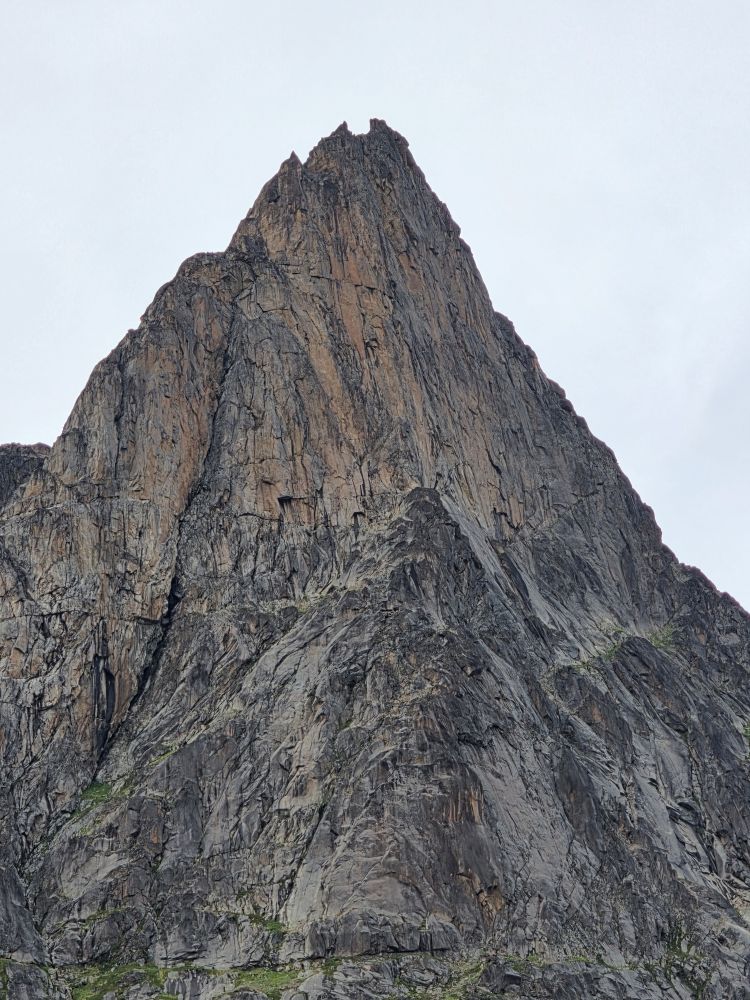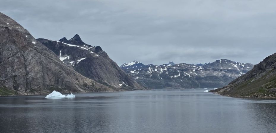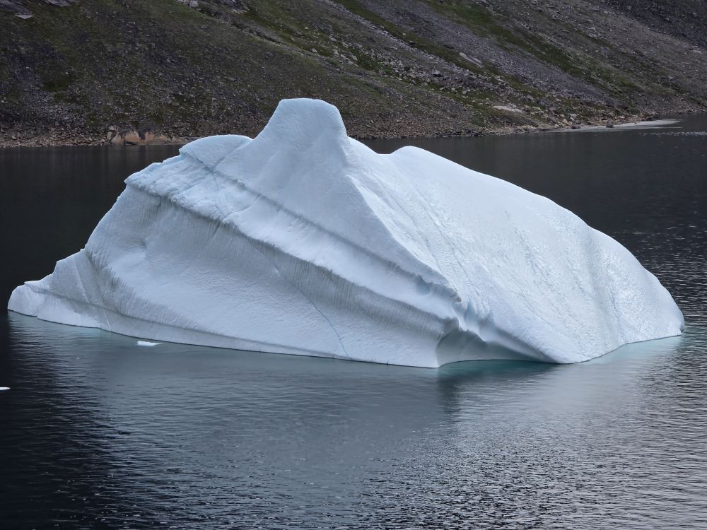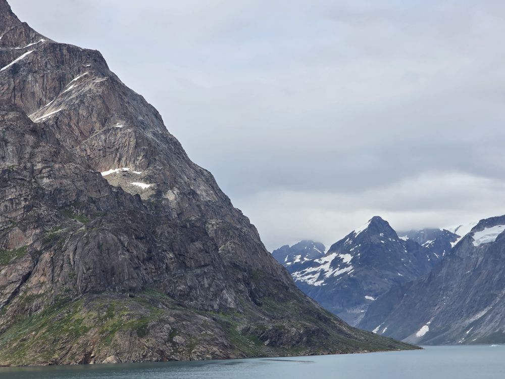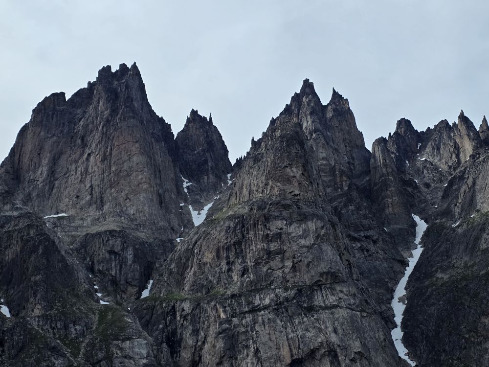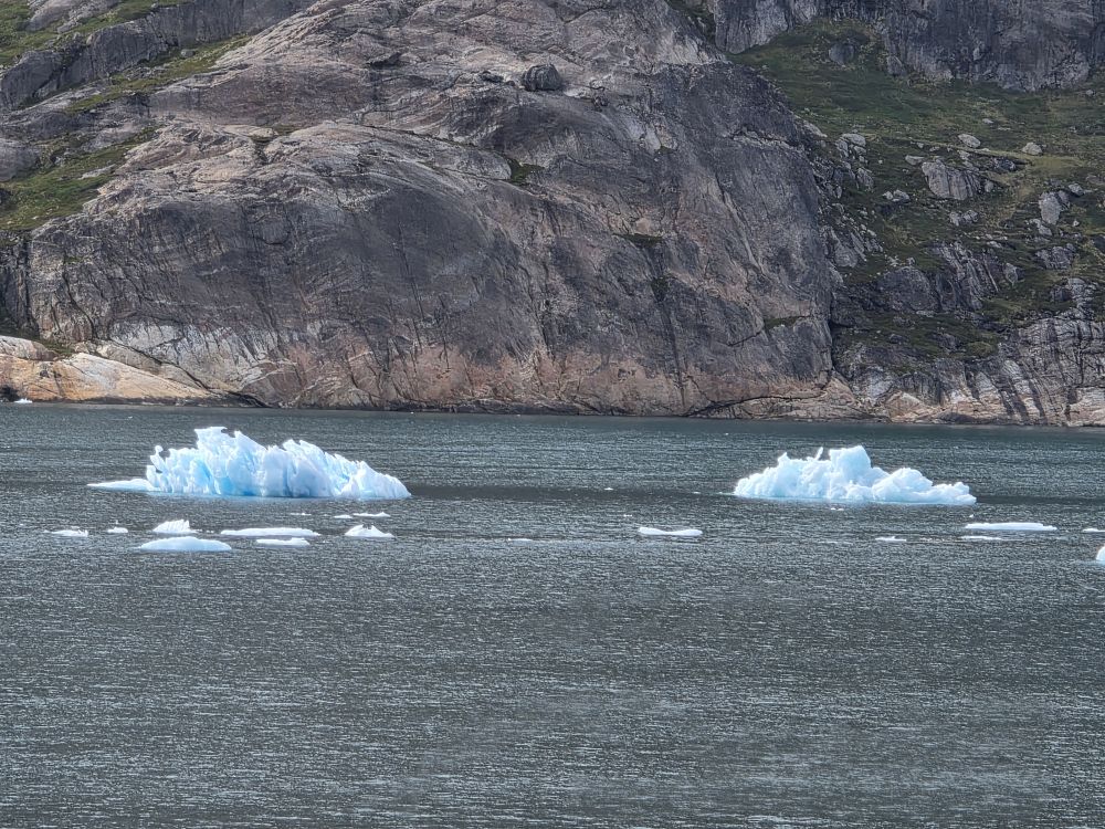 As we prepare, we pass this little town called Aappilattoq, completely isolated out in the fjord. A little speedboat has been going in and out of the fjord and we realize that is the only link to this little teeny outpost here at the base of the craggy cliffs. It is just crazy. 200 people, a church, a school. Amazing the life out here.