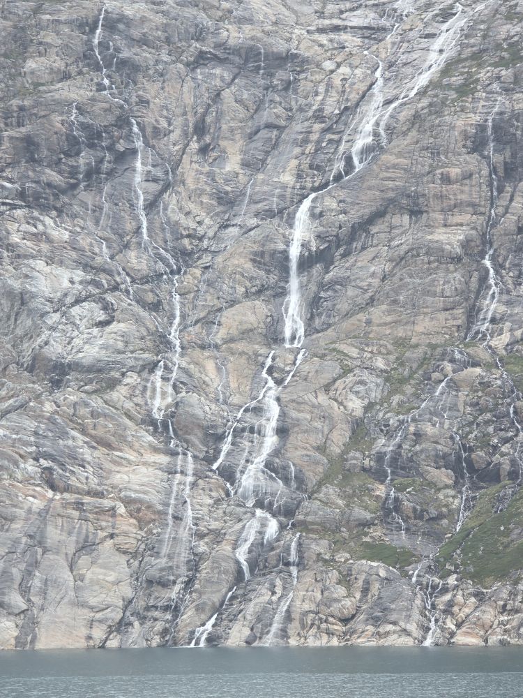 Glaciers begin to appear a little before 4 along with more icebergs and so much more great scenery, including melting glacier waterfalls, we can’t tear ourselves away from the freezing open decks!