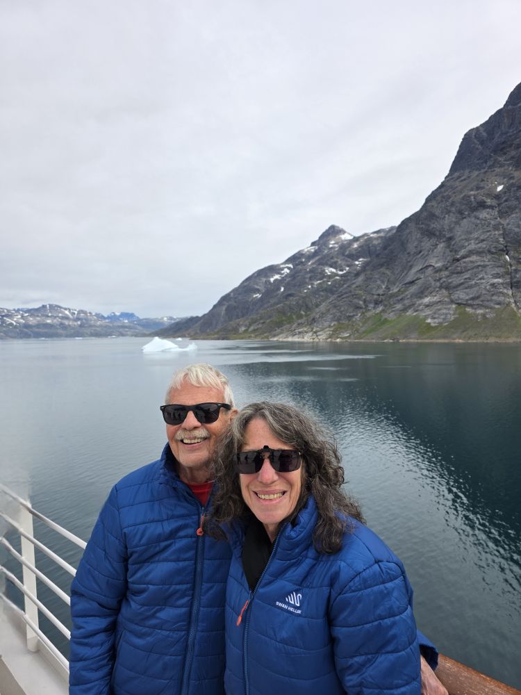 Next up was Dr. Jannie with more Greenland information about legends and customs. Interesting, but a lot of repeat info from the first lecture where she talked about Prince Christian Sound. The sound is called a “sound” because of the glacial rivers that flow through. Prince Christian Sound is 60 miles long, cutting between the mainland of Greenland and an archipelago of islands. In some places it can be 1500 feet across, with numerous glaciers and calving icebergs. It was named after the Prince who became the 8th King of Denmark. Some of the wildlife we may see are Minke and Fin whales, seals and fulmar gulls.