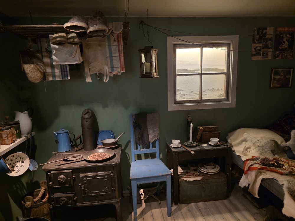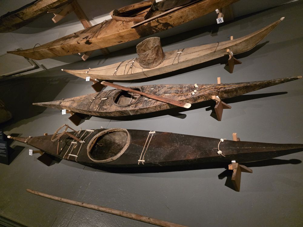 More kayaks and boats, more carvings in typical Innuit style, explanations of the old cultures and some interesting descriptions of how WWII brought changes to Greenland in the form of paraffin lamps that were prohibited before 1940 (why? They never explained that!), contacts with the USA and Canada that allowed a greater variety of goods in shops, ordering from Sears and Roebuck, all sorts of new economic opportunity. As a result, Greenland was one of the few countries that didn’t suffer from great shortages during the war. A truly fascinating stroll through Greenland history.