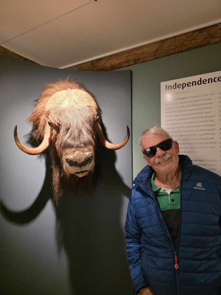 We didn’t spend as much time here as we had planned, giving us about 20 minutes to wait for the Local Museum to open. This is a perfect time for a snack. It is a little early, but what the heck? We aren’t eating anywhere shoreside, no way are spending $50 or $60 each for one dish. While we love to experiment and try new things, that’s just way too pricey for our tastes. So, we sit on a perfectly placed bench looking out over the water and eat our raisins and protein bars brought from home for just such a situation. From our location, we can also see the Nuuk boardwalk, famed for its “scenic walk.” Good thing too, because this was on our agenda, but tbh it is just a boardwalk along the coast. Nothing to write home about after all we’ve seen already, so a good deal we’ve scoped it out now and changed plans.