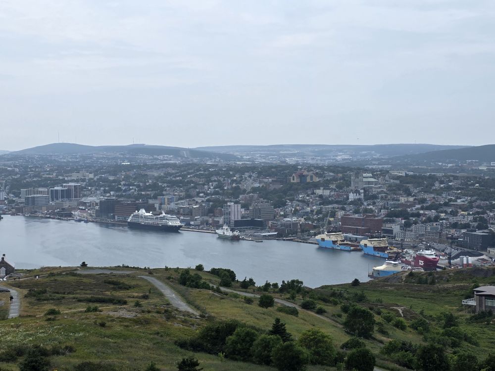 Named Signal Hill by the British Military in 1762, this strategic outpost is still known to many by its original name, the Lookout. Quite apropos as there are sweeping 360 degree views from virtually every angle up here. You can see the harbor with Quest majestically docked alongside the city, George’s Pond – the original water reservoir for the city, and Fort Amherst on the other side of the Narrows. All along the battery there are gun placements as well as information plaques describing the history of St. John’s; the Great Fire of 1892 that destroyed more than 1700 buildings and shaped the future development of the city; a concise overview of how Newfoundland participated in both WWI and WWII – WWI being protected by one lonely gun on the lower ridge of the hill, WWII with 10,000 American troops and 6,000 Canadians stationed here, using the city as a convoy port; and most interestingly, a panel describing the pack ice and icebergs that can appear here in St. John’s – pack ice up to 27” thick in February and March, icebergs from Greenland – 2,200 of which reached the waters off of St. john’s in 1983/84. Wild.