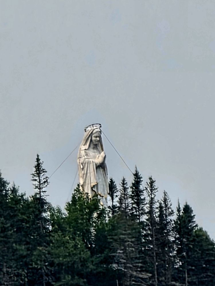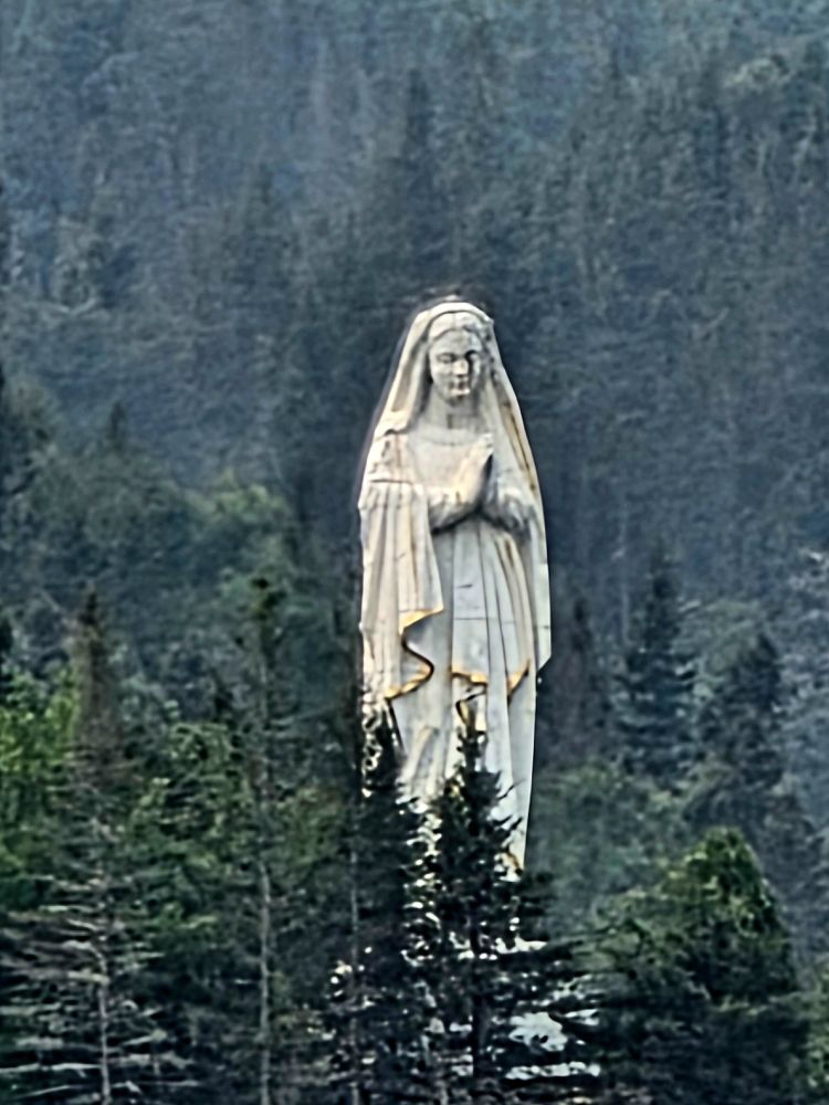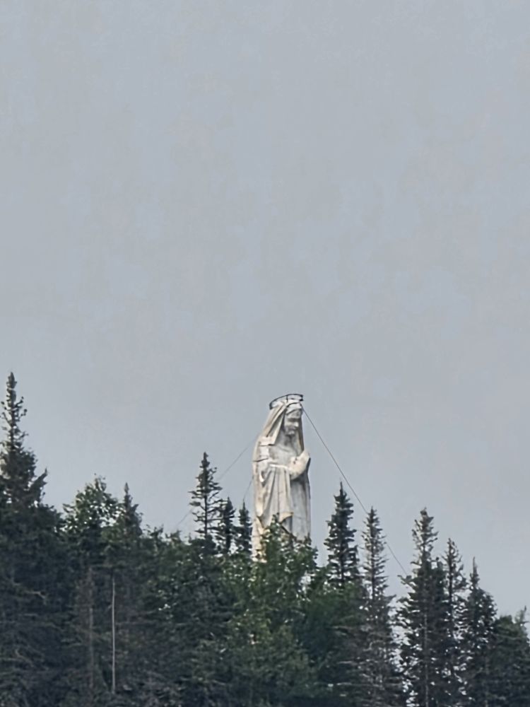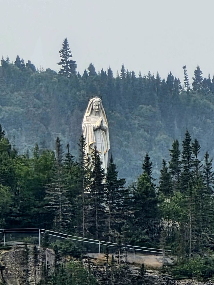 Although, one highlight of being this late in the morning – we are on the balcony when the Horn-Happy Captain blows the horn so we can hear the echoes in the fjord. That was actually a good use of the f’ing horn! And then we get incredible views of the Virgin Mary statue on the cliffs of the National Park (where we wanted to hike) above the fjord. So there is that.