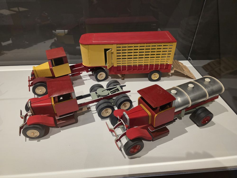 The Leon Brassard exhibit held most of his models, fully functional motorized vehicles with suspensions, beginning with his first creation from when he was 14 years old. A local mechanical marvel, he even designed and built a life-size vehicle that actually ran and cavorted all around Lac-Saint-Jean in it with his friends. On a whimsical note, he used discarded scraps of wood to create “Little Women,” just because he hated to throw anything away and as the display says, was “a reclaimer before his time.”