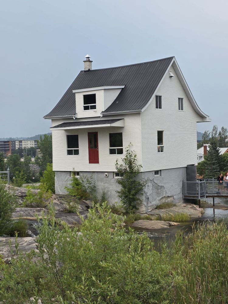 Housed in the old Chicoutimi Pulp Company’s enormous factory buildings, the museum has exhibits ranging from the history of Saguenay (Chek8timi) to current and avant garde exhibits on a 3 man play that ran for 38 years (Broue [Brew]. Of Taverns and Men), a contemporary art exhibit of Jean-Jules Soucy (an incredibly creative and playful local artist), Leon Brassard’s mechanical innovation models (with real, working suspension) and the fantastic Far from Naïve – an interactive exhibit that traces the career of the painter Arthur Villeneuve, including his entire, full size moved here just for the (permanent) exhibit house!