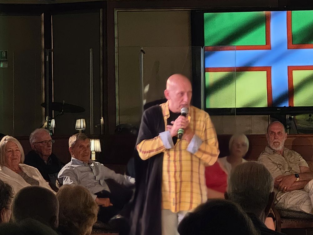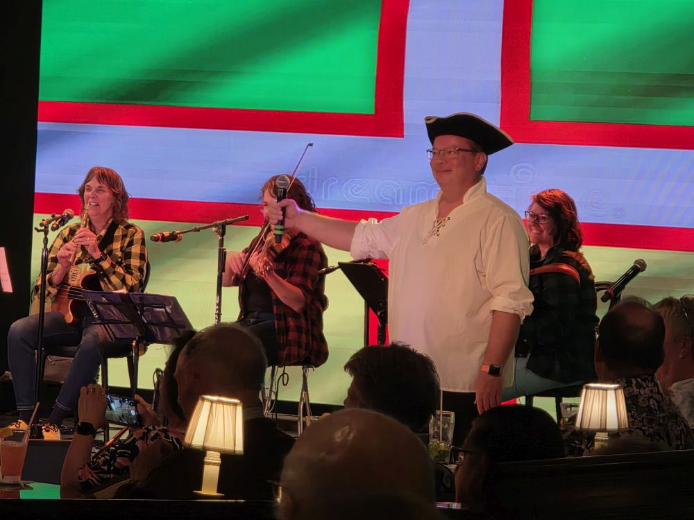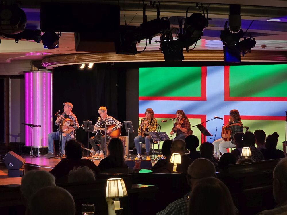 Sadly, as it turned out, photo taking was limited. I mean, why bother? The show was put on the Grand Anse band, 5 local musicians (who CD Martin oversold when he tried to hype up the event by introducing them as “this is as destination immersive as you can get, all 5 musicians are from Saguenay!” – uh huh, well, where else would they be from?), an emcee (who was the tour guide for the J’s and Bonnie’s tour today and who boarded the ship at the exact same time we did) and a choreographer, Louis, who had passengers come up and dance with him. Really? The emcee talked and talked about the history of Saguenay, the English territory, how the cultures merged, with the Celtic influence still strong (and it was – you could hear it in the music), blah, blah, blah. The lady in front of us was playing games on her phone, the guy across the aisle answering emails, at least 25% of the audience left before it was over – including us as we were bored out of our skulls. Totally Az-NOT-amazing. Sorry to say, but the trend here is not looking good for Azamara brand promises. Plus, we heard later that there were supposed to be local dancers, but they didn’t make it for the first show. Come on! That’s just not a good look at all. Yikes.