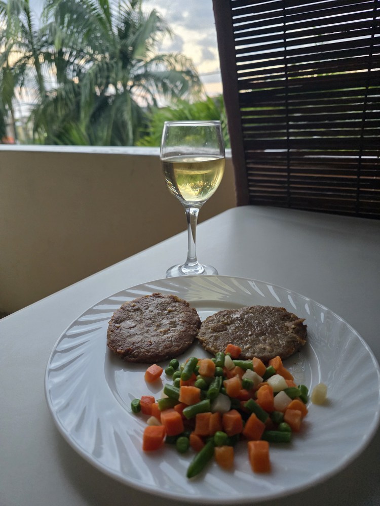Once home, we turn on the A/C and sit outside for a bit in the nice breeze (if only we could capture it inside!) waiting for the place to cool down. Later, trying to push our awake time as long as can, we eat our gourmet dinner on the balcony a little before 7 – it’s actually quite good tbh! – then hang out watching and listening to the firecrackers until it starts to get dark and we feel the mosquitoes buzzing around.