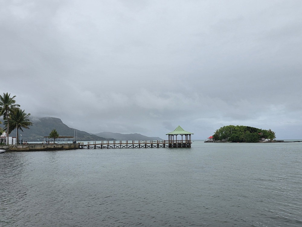 But, hey, good thing we did, because around 4:30 the skies opened up and it was a monsoon. Ok, for only about 10 minutes and then it just stopped. But still. We’re comfy and dry in our little Mahebourg abode.