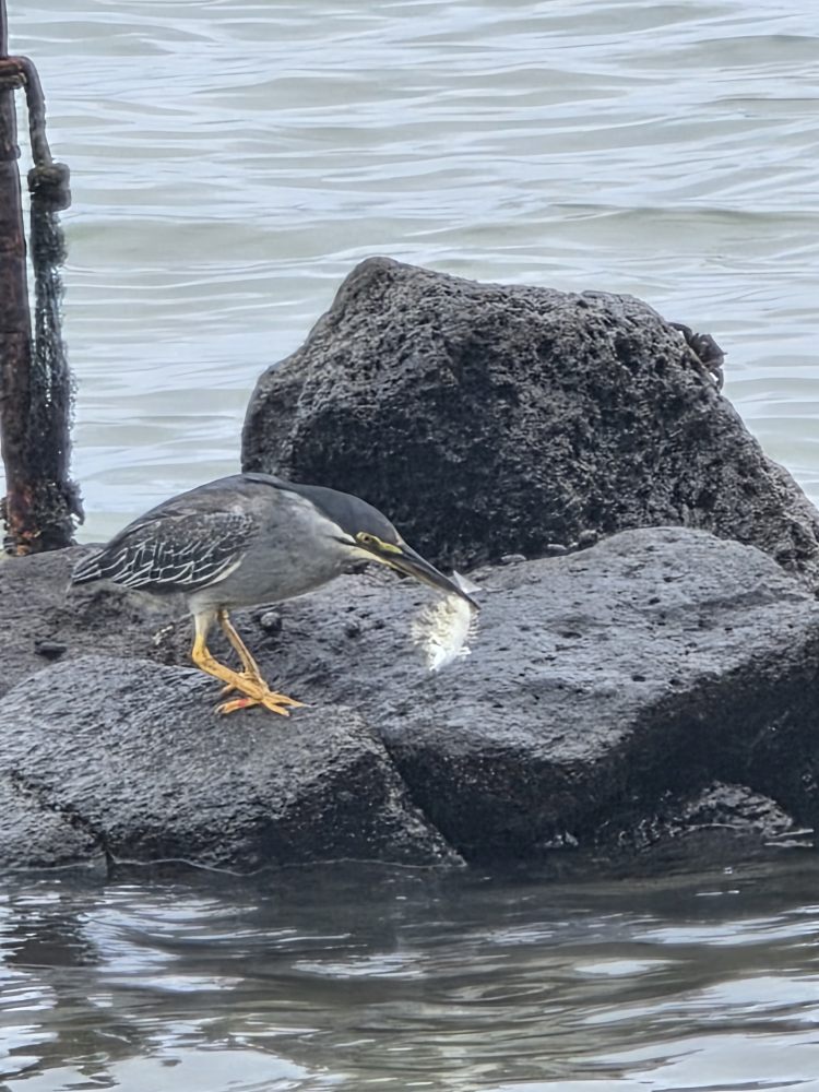 Further along, at a little inlet we stumbled upon, I become fascinated with this little Striated Heron fishing out on a rock, while Ed focuses on the little wooden boats in the bay. Then we wander on home, meeting Siddick in the street near the apartment, having a long conversation about families and taking care of mothers, then bidding him farewell to spend the rest of the afternoon in the apartment – doing the un-E&C thing!