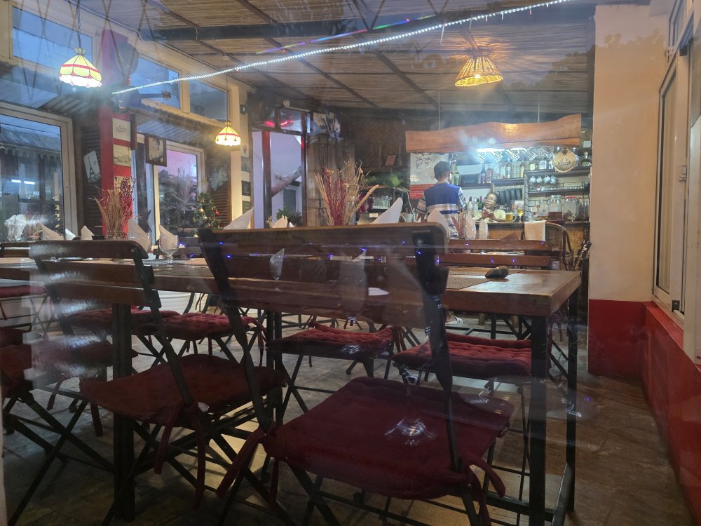 After a relatively decent sleep – rock hard bed, firecrackers at 1 am, ok, enough New Years already! – we don’t get up until after 7 to start our day. It’s overcast and cloudy so coffee on the patio with a nice little breeze is wonderful – and surprise! Siddick shows up early (to clean the downstairs apartment) with 2 hot baguettes. He calls up to us from the downstairs garden telling us he is there with the baguettes. So sweet.