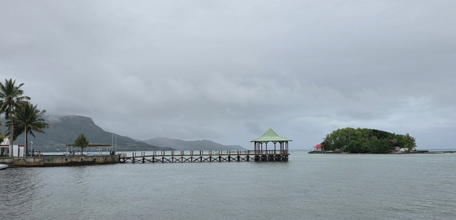 But, hey, good thing we did, because around 4:30 the skies opened up and it was a monsoon. Ok, for only about 10 minutes and then it just stopped. But still. We’re comfy and dry in our little Mahebourg abode.