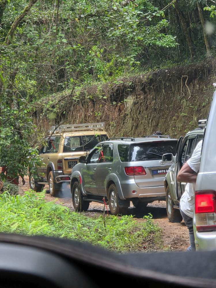 Finally able to dock, alongside the 100+ Tuk Tuks that are lining the pier, we get wait with the other 300 passengers who are on tours, finally being released out onto the dock with our group where we are divided into smaller groups of 6 to 8 to stuff ourselves into 4×4’s. Fortunately the 4x4s are real vehicles – not open-air safari vehicles – and even more fortunately, we have been chatting with a fellow tour goer, Linda, who we have banded together with to stay in the same 4×4. Chaos ensues immediately, the tour guides are almost like touts – yelling and screaming trying to grab as many passengers as they need. We three stick together, managing to pass from one tour guide/tout to another and ending up with the 3 of us alone in a nice air conditioned Ford 4×4. The guide keeps saying he needs one more person, he needs 4 in the car. But no one else is a single – and no one wants to be separated. Finally, after just about all the other cars leave, they give up on 4 and it ends up with Ed, me and Linda on our “private” Amber Mountain tour – joined only by Flo, our fabulous guide and Hussain, our professional driver!
