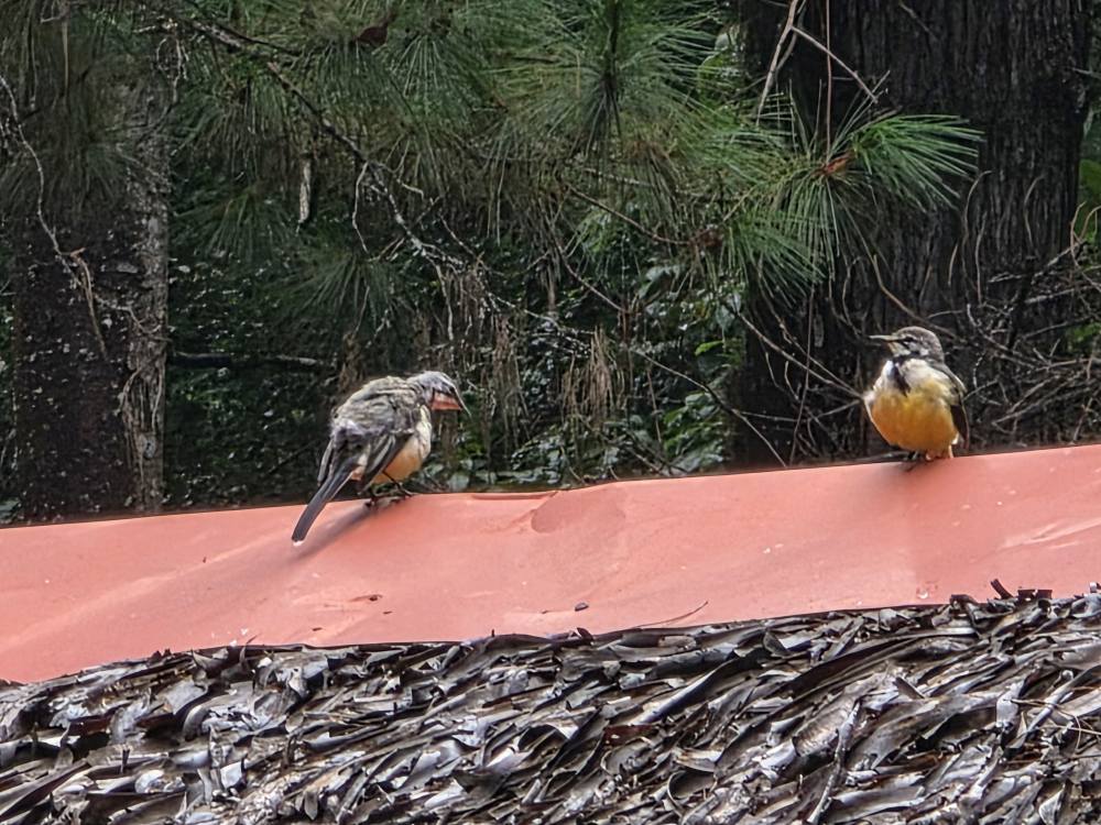Further into the park, we stop along with the other 25 or so vehicles at our “picnic” spot. Even though it is already 3pm, the tour was listed as including lunch. But since the tour didn’t even start until 12:30, we all had plenty of time to eat on the ship before leaving, thus they gave us picnic boxes with a ham sandwich, cookies and one “whole fruit” (i.e., banana) each. It is a nice snack and a pretty place to sit and munch while watching the wildlife. There is a mongoose sighting (I missed the shot) and there are also these adorable little wagtail birds on the roof of the picnic huts.