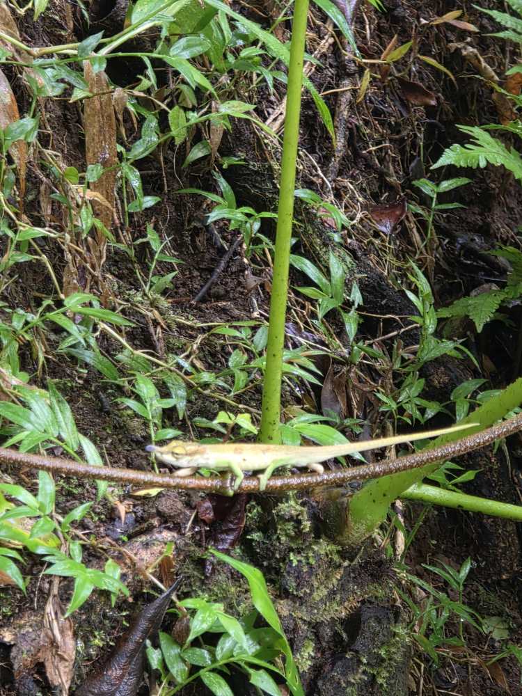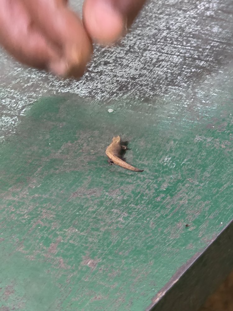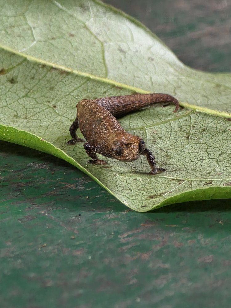 We’ve picked up another vehicle whose passengers are now with us in the picnic hut – apparently Flo is the guide for all of us – so they are now with us on the tour as eagle-eyes Flo finds a Brookesia Minima, one of the smallest lizards of the chameleon species. How does he see these things? It is teeny tiny with those huge eyes that see 360 degrees, little black feet and only moves 3 feet a day. And this one is what Flo says is a “big one,” a fully grown adult.