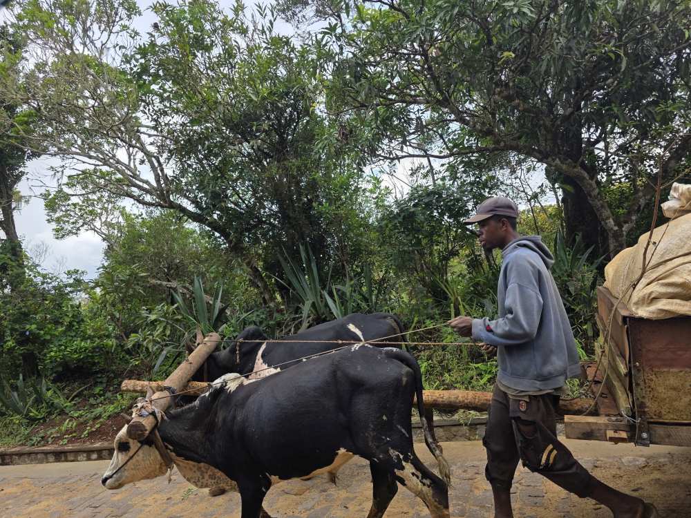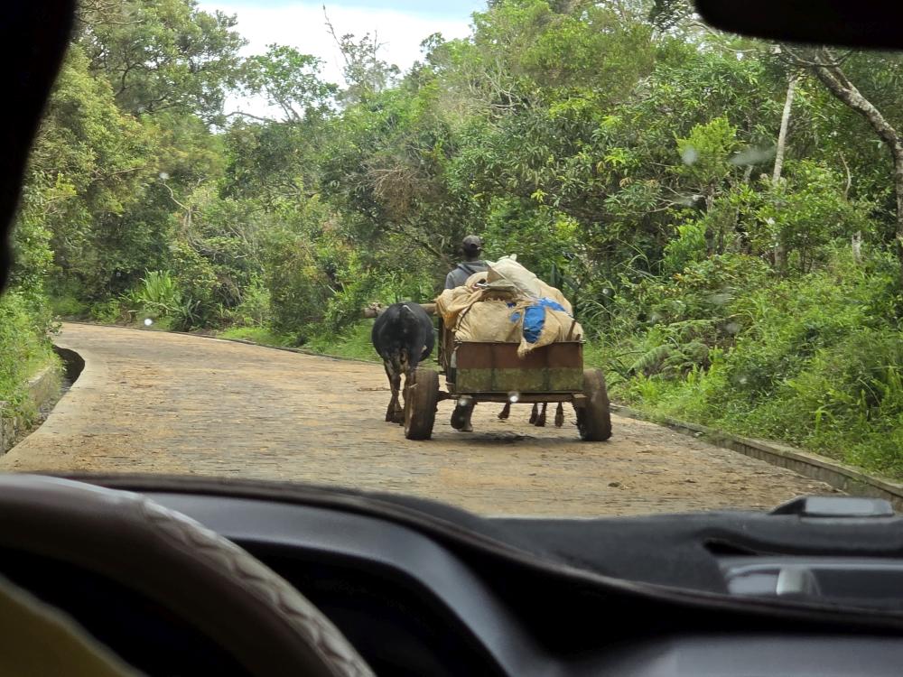 Gathering our other group, our 2 vehicles head out of the park and back into town on no less treacherous road. It is probably even worse now because we are going down hill. But Hussain is a master and delivers us safely onto the paved roadway as we make our way toward Diego Suarez, passing plenty of Madagascar 4x4s – ox driven carts – on the way. About halfway to town, Flo stops to buy some Lychee for his kids at Hussain’s cousins’ place. Hussain comes back to the car with easily 10 pounds of lychees, while Flo arrives with at least 5. A few are distributed throughout the car and we happily sit there peeling and munching on the sweet fruit the rest of the way.