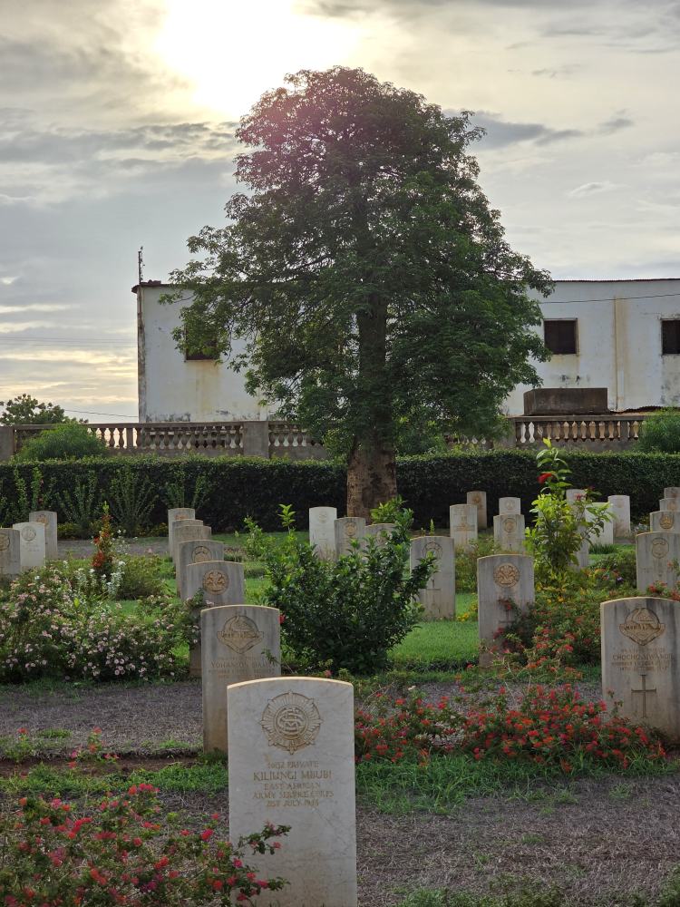 Then it is onto the War cemetery dedicated to the sailors, soldiers and airmen who fought and died here in WWII. The island was prized for its location within the major sea supply lines and a battle ensued between the French and the British. In the end, the British took control and the 315 causalities are all buried here. The cemetery is amazingly well taken care of, beautifully landscaped and clean, with a large Baobob tree at one end. At least we got to see one of these iconic trees – which Flo explains is not a tree at all. It is hollow and not a tree, but categorized as an herb, a Jurassic herb. The bark and leaves are used to help babies grow, and for other healthy purposes.