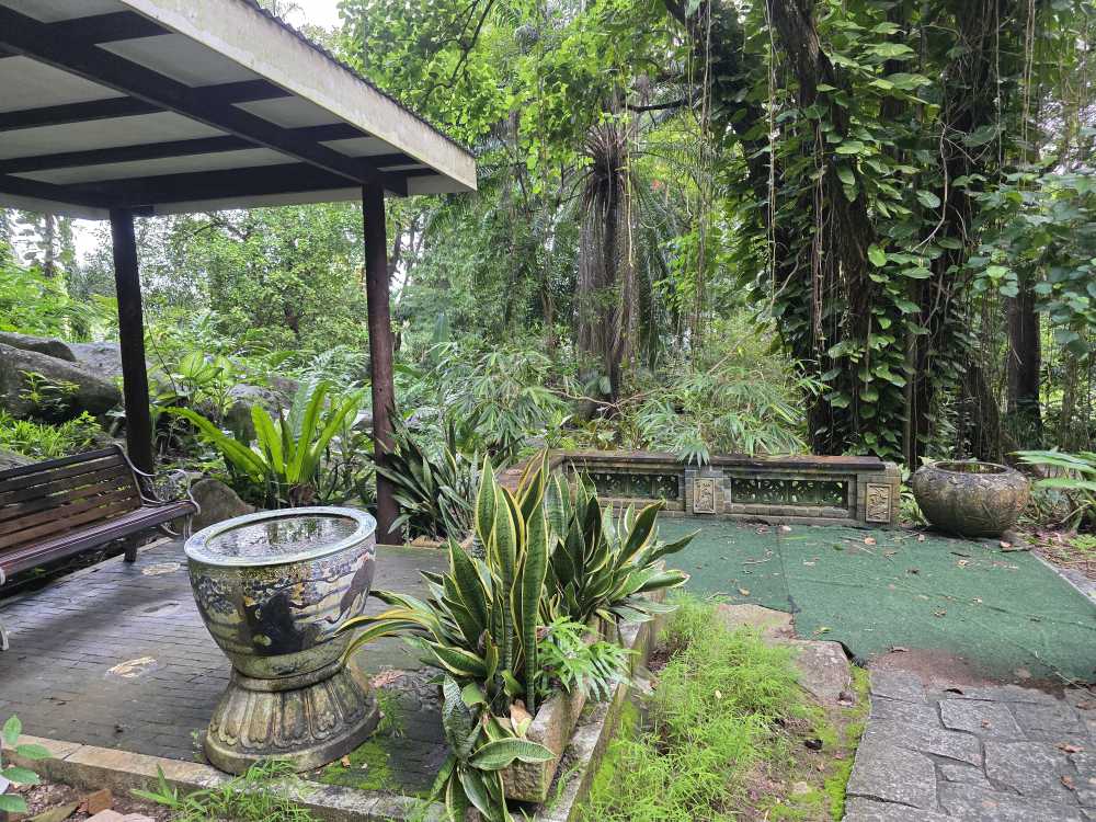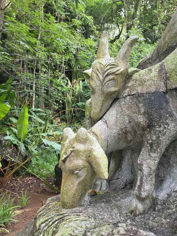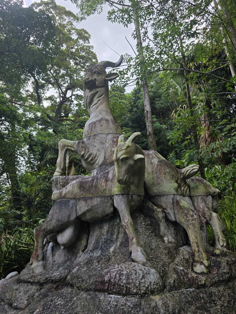 Circling back to the main path, we reach the all but hidden Chinese Guangzhou Garden – a serene and beautiful little area with traditional Chinese vases, gorgeous budding Lobsterclaw flowers that remind us of Birds of Paradise and the Five Rams statue. The statue was gifted by the city of Guangzhou, it is their city symbol, and represents the legend that has Gods riding rams gave seeds to the citizens of Guangzhou, allowing for them to grow wheat to feed themselves, turning the area into fertile land. The Gods left the rams, which turned into stone protecting the area and continuing to keep it fertile. Sort of like these gardens!