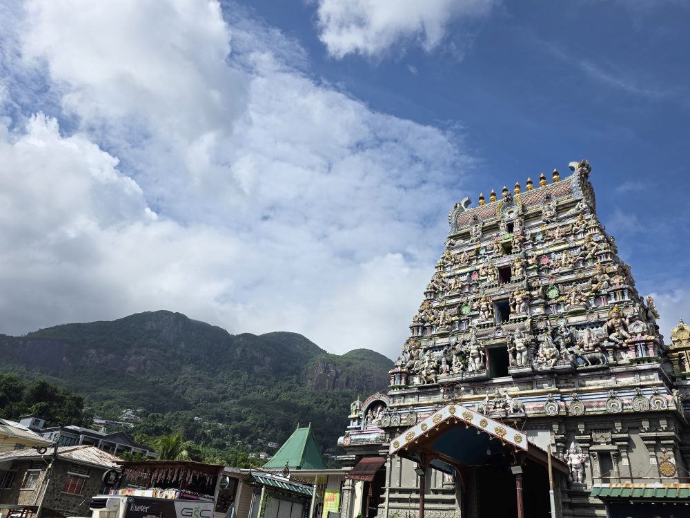 After that, it’s the central market – lots of produce, lots of spices, pricey as is everything here in the Seychelles. Then it is over to the Navashakti Vinayakar Temple for some great shots of the temple and the mountains beyond. And….our touring is complete.