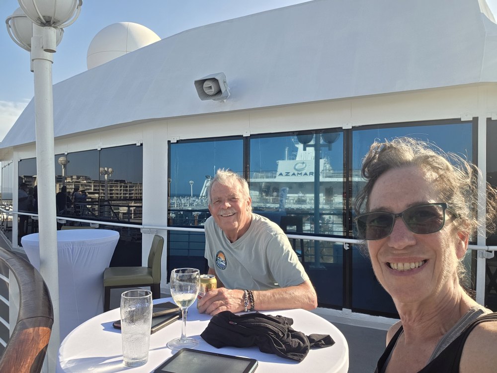 Back aboard, we have an epiphany – Discoveries has a great menu tonight, and we really should eat there instead of Prime C. So, up I go to talk to Jeannie, who performs her miracle and finds us a reservation for Prime C tomorrow night – yes! Proscuitto wrapped Hake for dinner tonight!