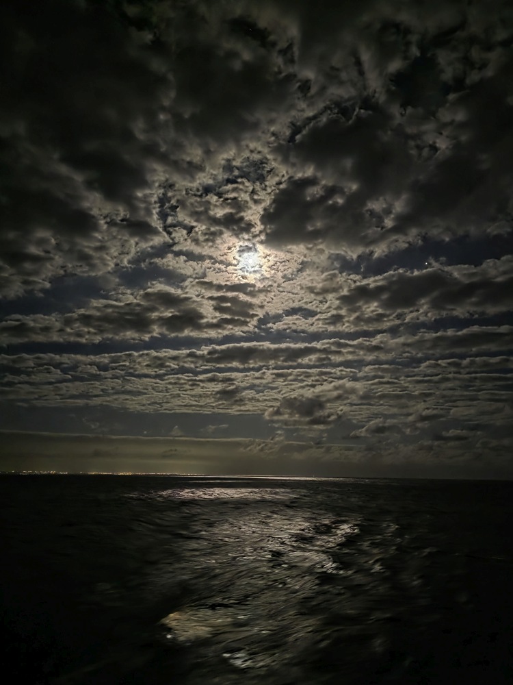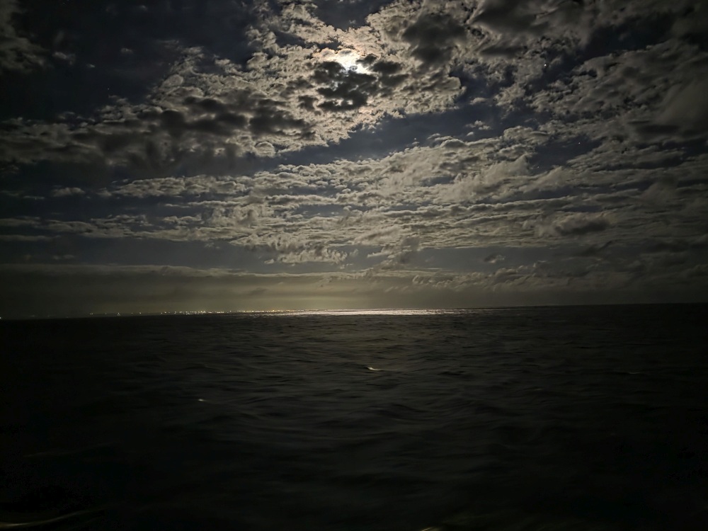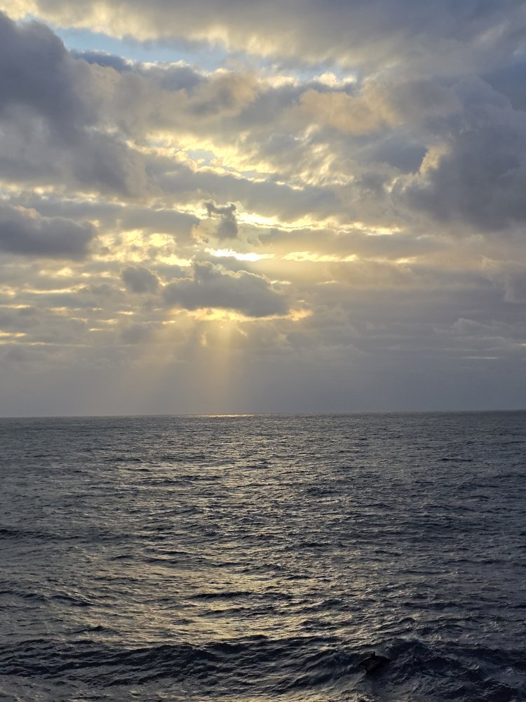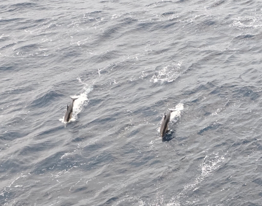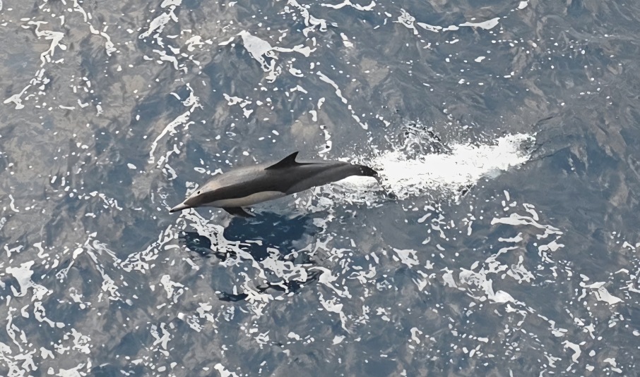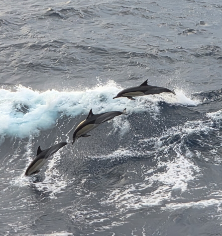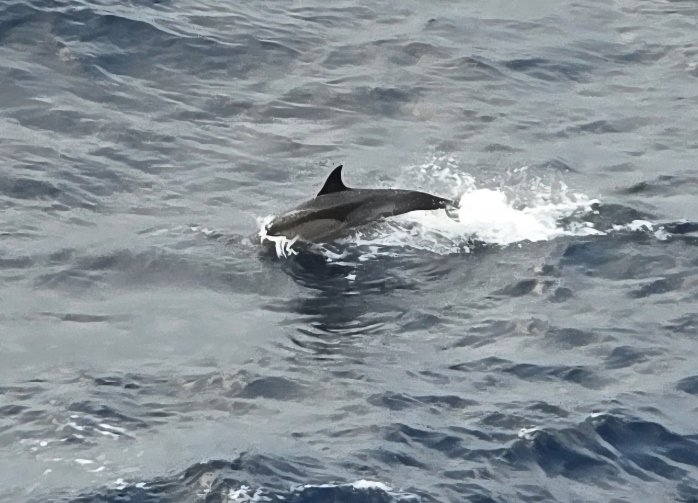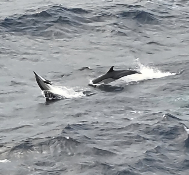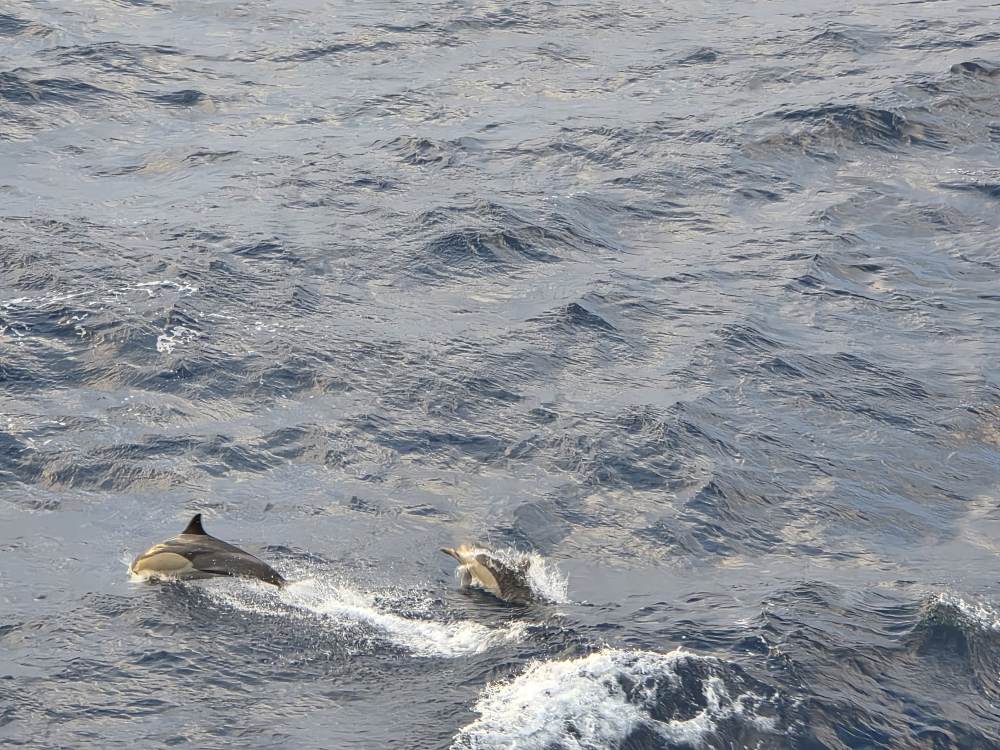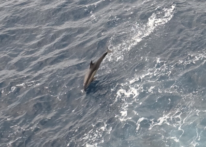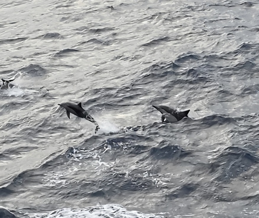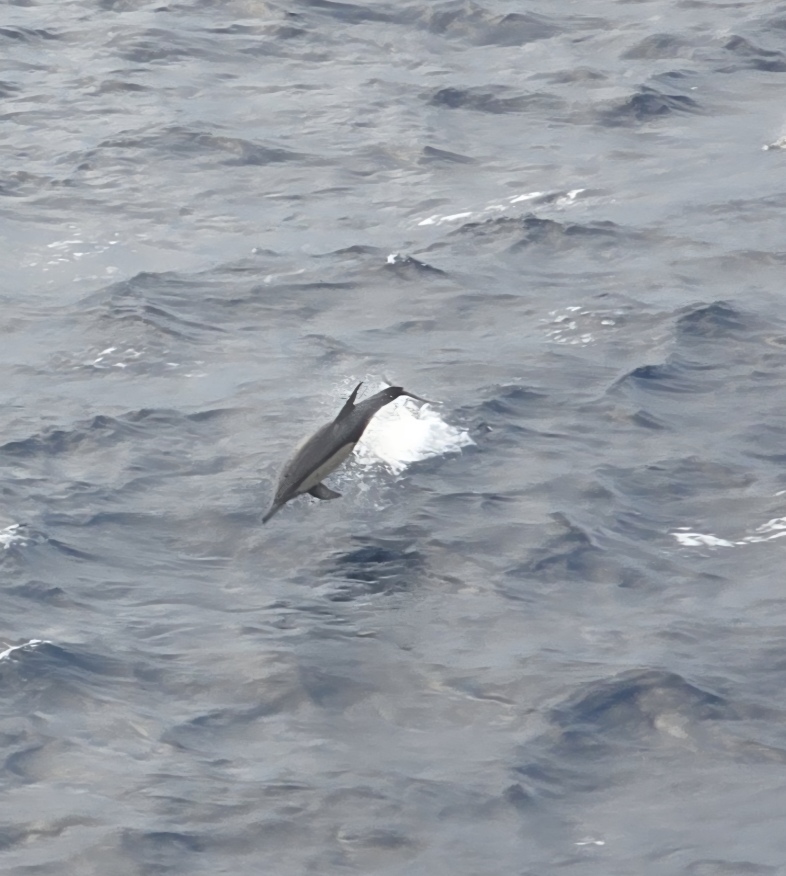 Back on the balcony we are totally entertained by a huge pod of dolphins. There must have been 50 or 60 of them all around the ship, playing in the wake, swimming alongside. The water is so clear, you can actually see them swimming right beneath the surface.