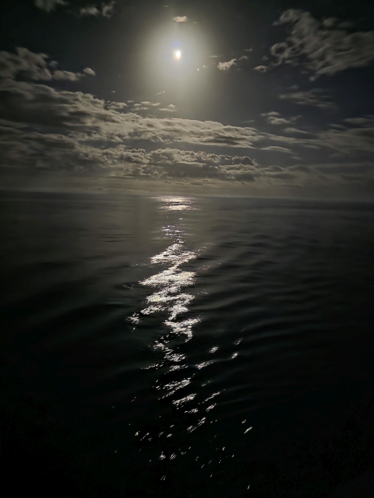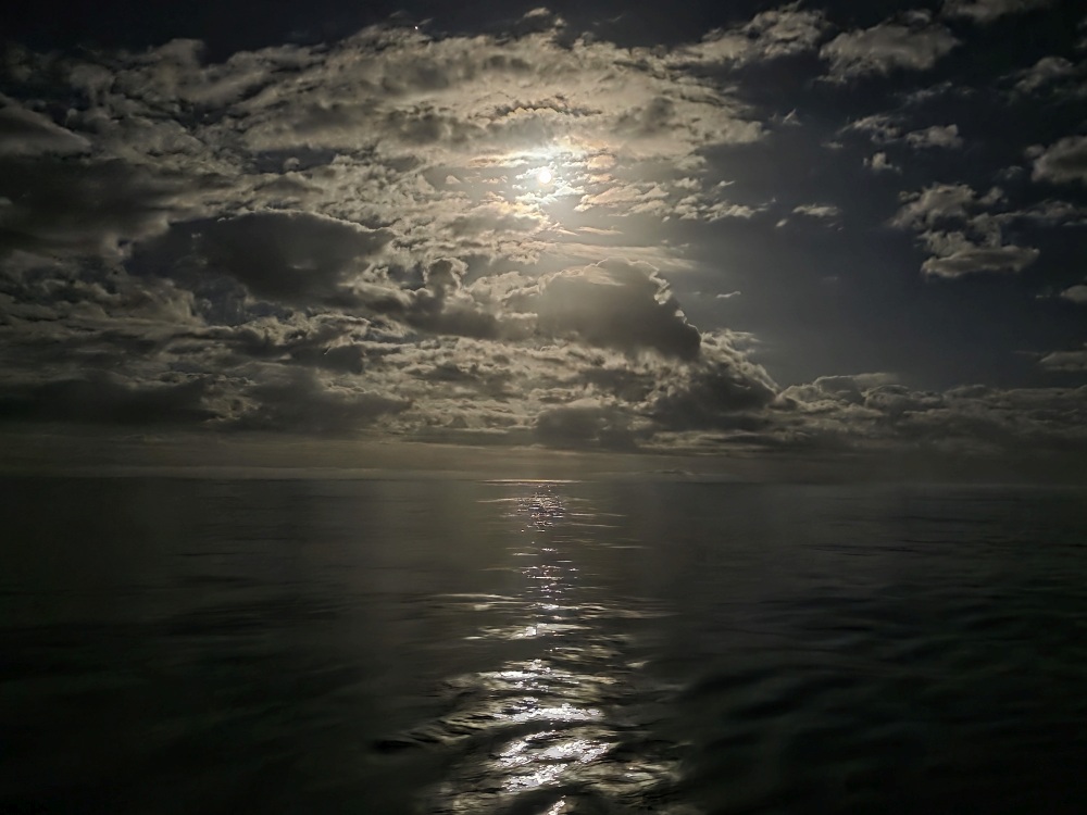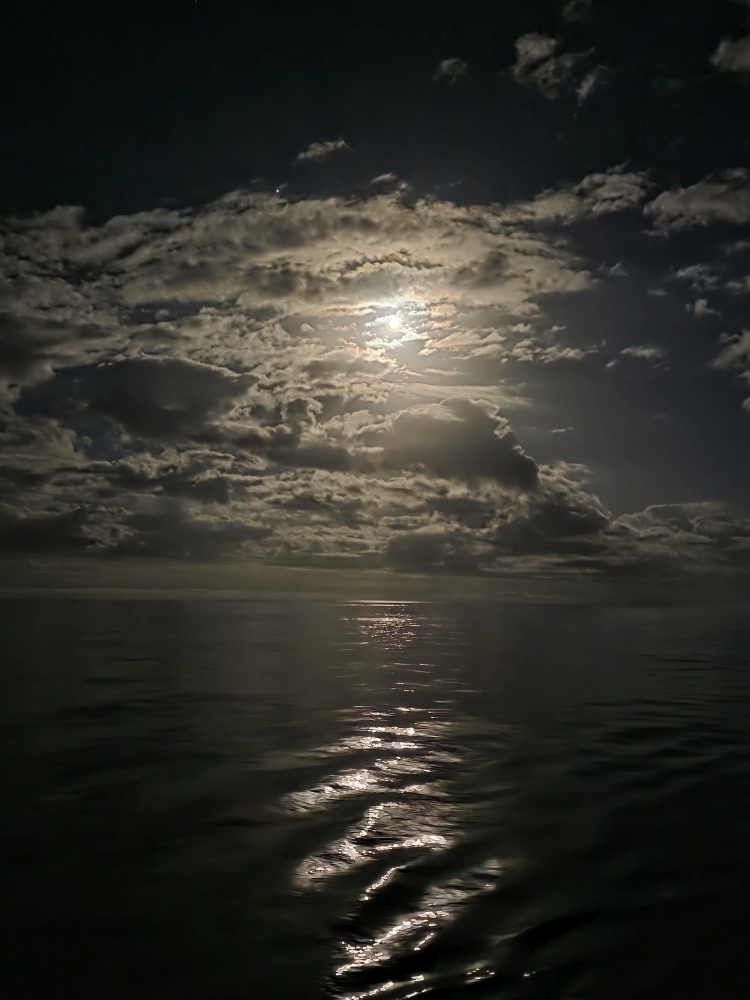 Tonight we dine in Aqualina, enjoying an excellent sunset while we dine. Sweet little Eka (who we have talked to in Windows a ton) is our waitress this evening and we find out – much to our surprise – that she is married to Putu! What?? No way! We are floored. He never said a word! They’ve been married a year now already. Oh – he is in such trouble now. And we spend the entire excellent meal telling Eka how much trouble Putu is in – and how we are going directly down to Discoveries immediately after we finish here to smack him. And we do just that! Honestly! After making him know just how angry (ha ha) we are with him, we end up sitting down there for a drink, chatting about his family, Eka, the wedding, everything, for a while, then head back to the balcony for a fabulous moonrise over the calm water.