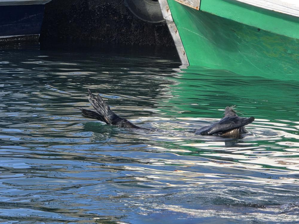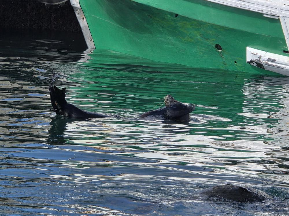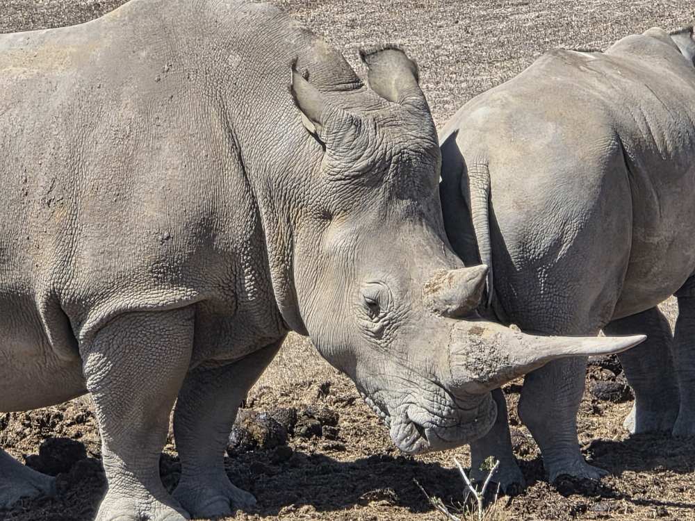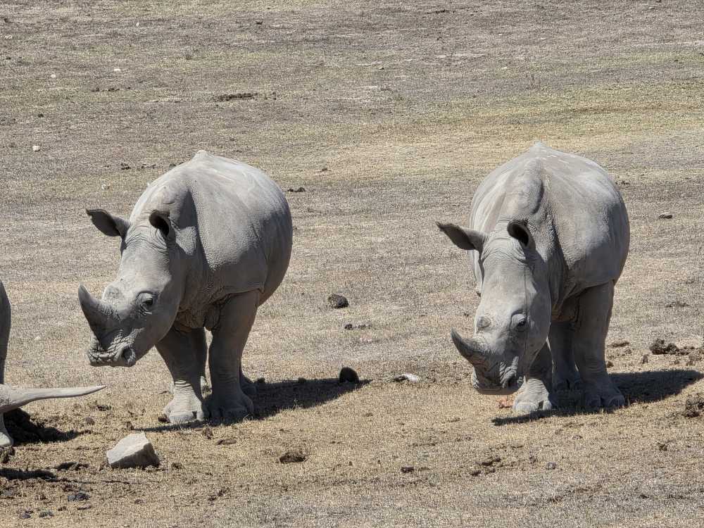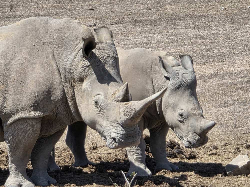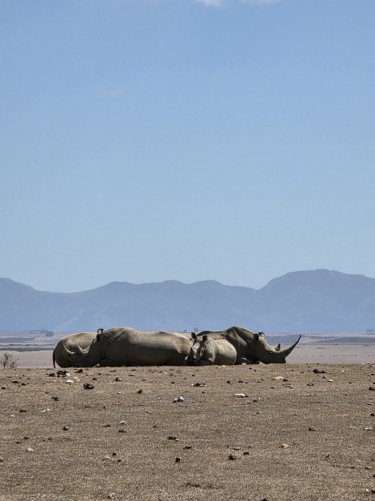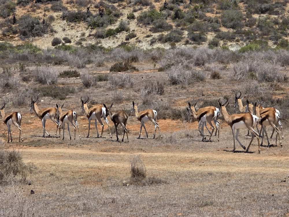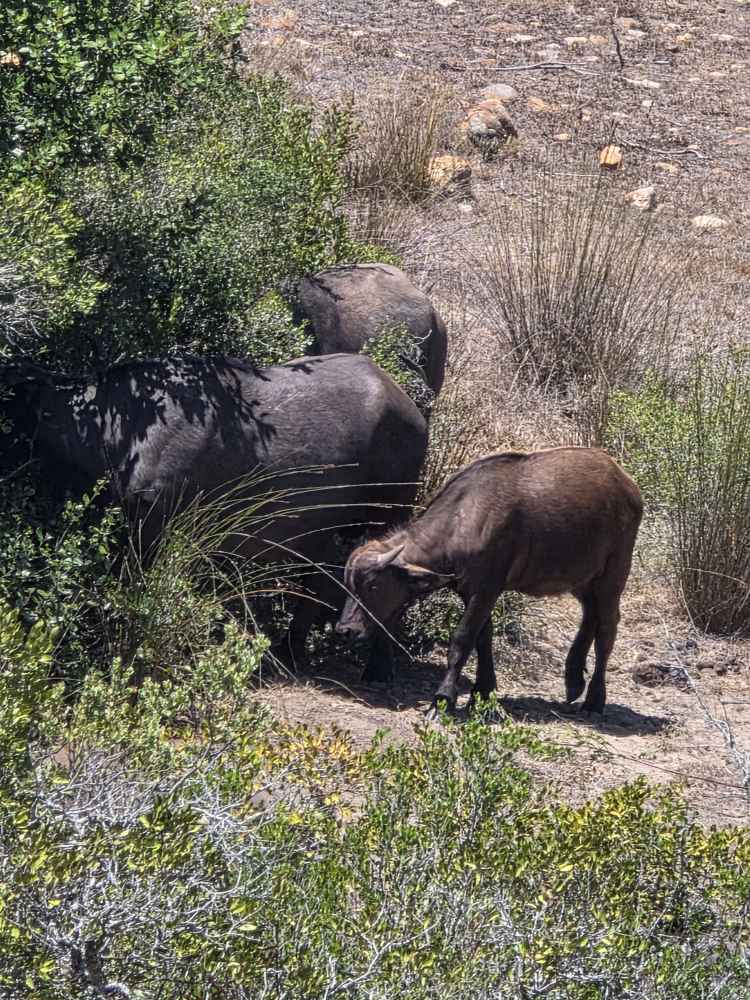 So, we have a very leisurely morning, then head down to Cabaret to wait for our tour to be called and hit the tender platform. First on the tender, great seats by the door to watch the seals frolicking in the harbor. First off – and still we don’t have the front seat as there are people already there. Yeah, yeah, yeah, not like we haven’t done that ourselves. And truly we don’t care today, it’s the game drive that matters. We have a lovely guide named Ericka, originally from Switzerland, 45 years ago! Came here for one year, and well, you see how that went! She gives us the background on Mossel Bay as we go – which we’ve heard previously – 70,000 population, doubles in the summer with everyone here camping at the campgrounds. Very much a resort/vacation type place. She explains some of the animals, things like: antelope have horns, not antlers; White rhino was so named due to confusion over translation and language, the first Dutch settlers here called it a wide-lipped rhino, but in the translation it ended up White rhino instead; The black rhino is called black simply to differentiate it from the White, the only difference being a hooked lip; both rhinos are grey.