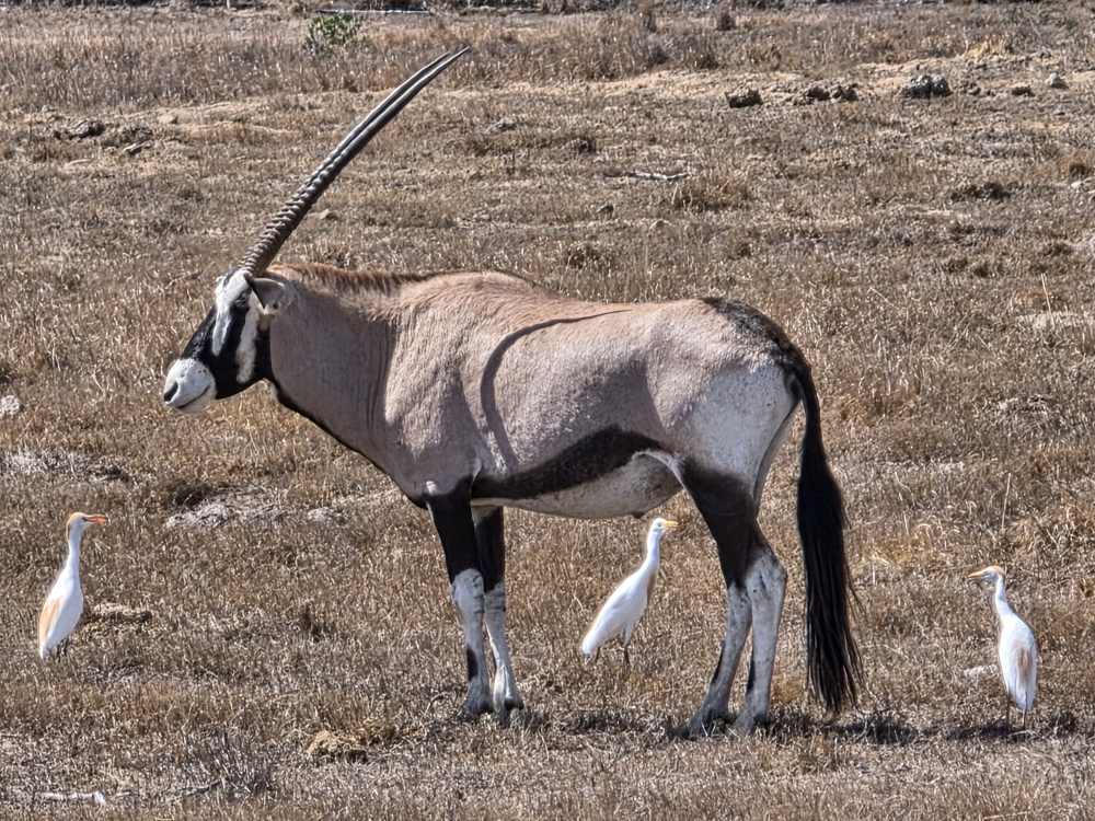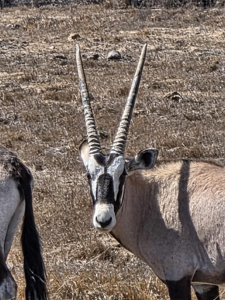 Off we go, spotting Oryx, the national antelope of Namibia. They feed on grass and can survive without water for weeks. Making them very resilient on these arid, wide open plains.