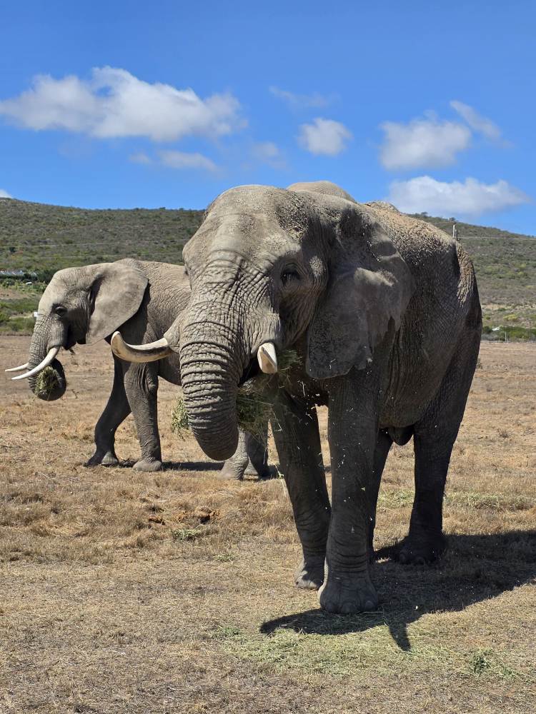 Our next sighting are the 2 elephants of the preserve, happily munching away on the grass they have been fed. The one old male is mammoth and very territorial! Even though all these animals are fairly tame and used to the game vehicles, they are still wild animals and this guy actually charges us! Scary! As you can see in that video, so scary I couldn’t keep filming, but was ducking to get away from his tusks! Either he didn’t like us getting that close while he was eating or didn’t like Able! Don’t know which, but either way, that was really wild. After that, they calmed down and we could stay and just watch them for a bit before racing off in search of our next sighting.
