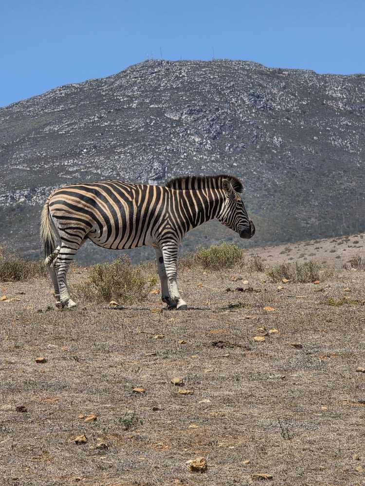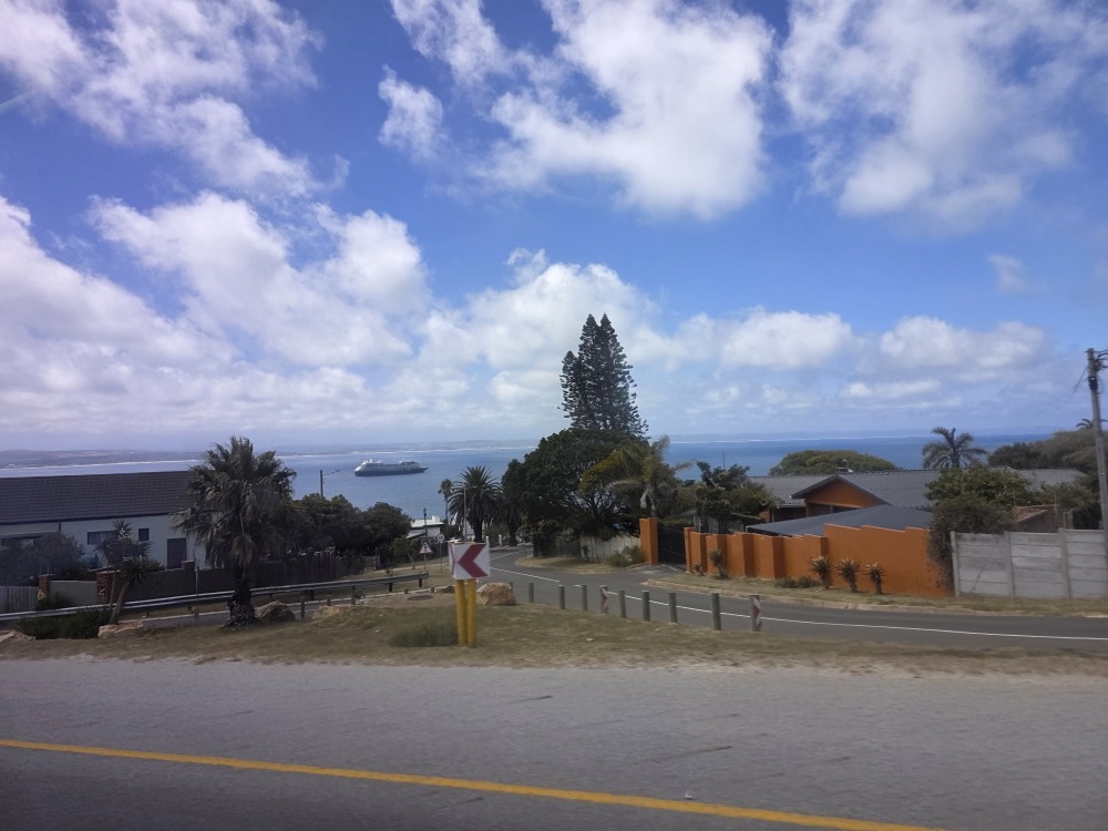 Yet another Shore Excursion today, our last, but nonetheless. We debated between just hanging around Mossel Bay, hiking out to the point, then visiting the museums here or doing the game drive. The animals got the best of us! Even though the timing is just the pits here. We get in at 7:30 and the stupid tour doesn’t leave until 9:30. I mean, why? Early morning is better to see the animals, right? And this will leave us no time to visit the town – nor will it get us back in time for lunch. It just doesn’t make sense. As do most of these ShoreEx timings. What to do?