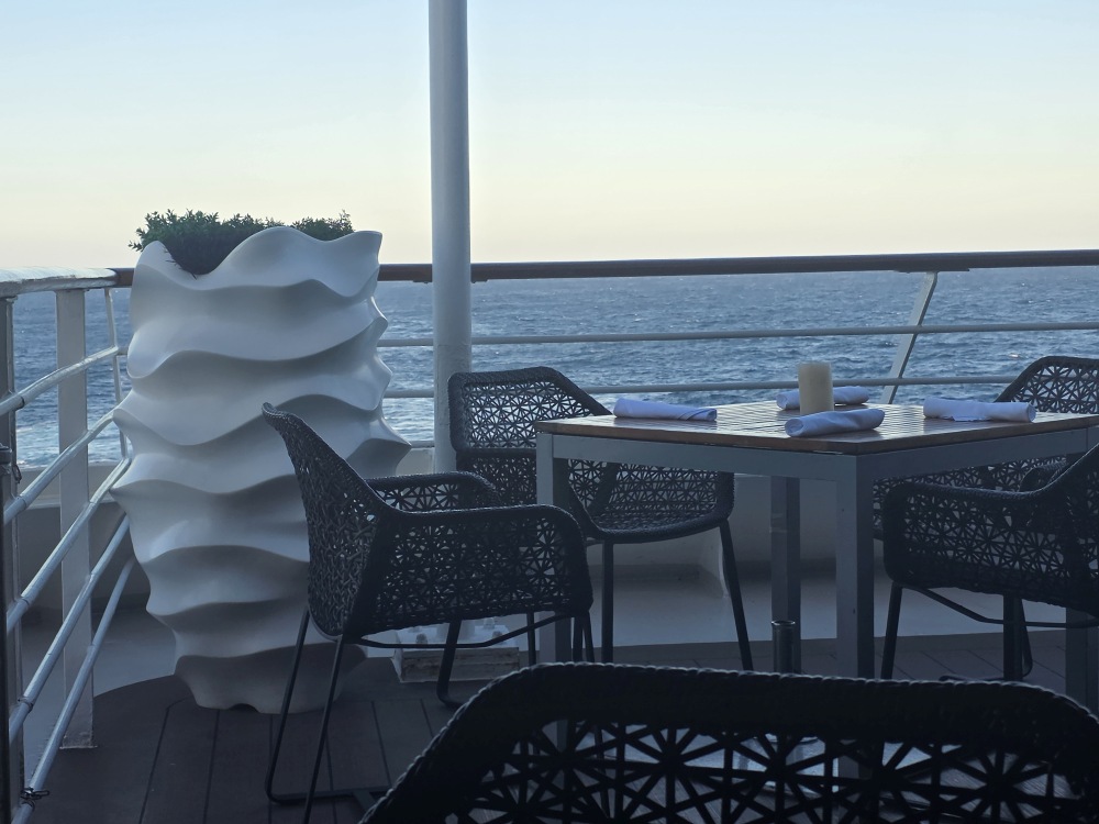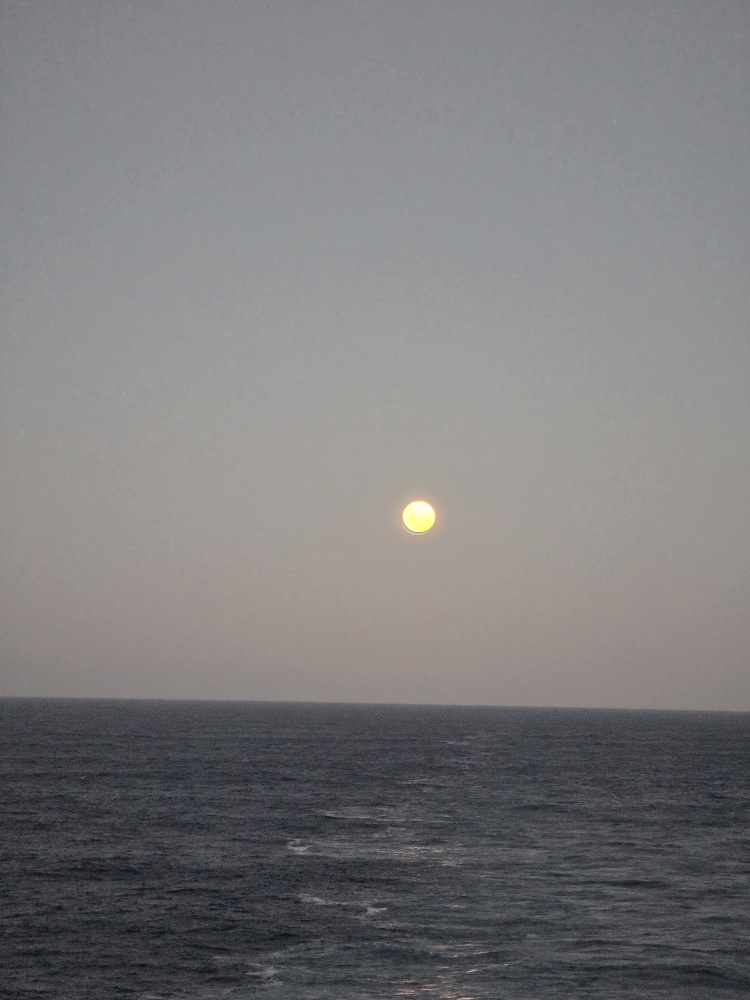 We just hang out in the gorgeous weather, cool breeze and enjoy the lovely evening and fantastic food. Along the way, Rafa and Monique come up to join us and we spend another great evening together, chatting and talking and thoroughly enjoying ourselves. Finally tearing ourselves away from our friends and the deck, we manage to make it to Jose’s last show. He is just so talented! Gotta love his Elton John tributes. We adore him. Then head back to the balcony for a gorgeous full moon and lovely end to our evening.