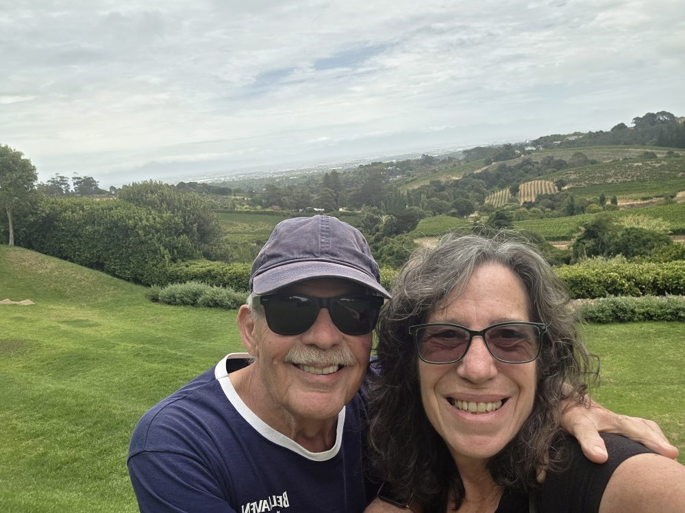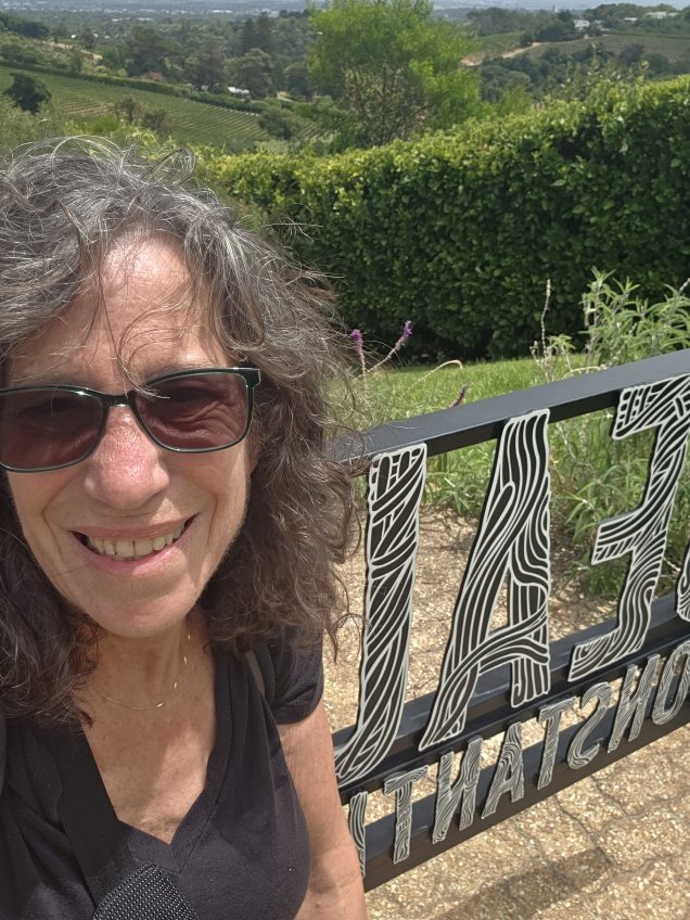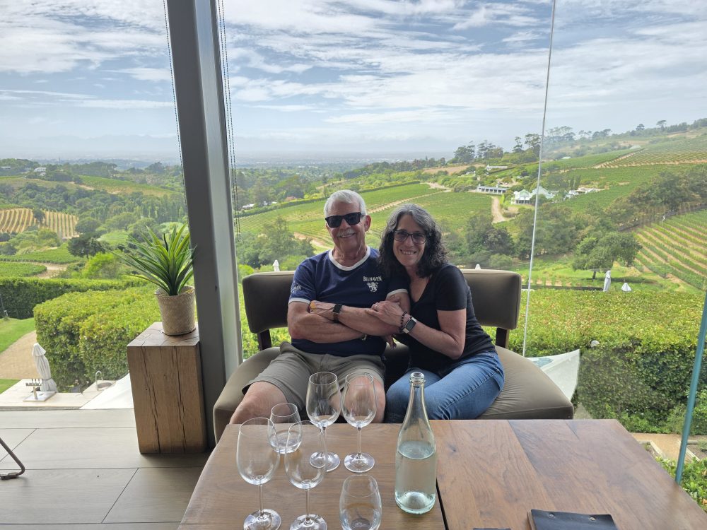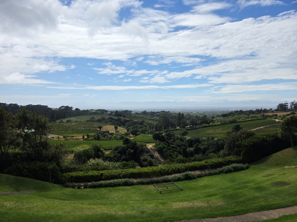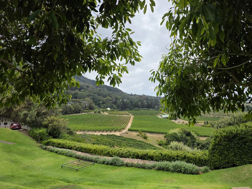 Lunch and tasting over, we hit the Loo with a View, then wander about the property taking various selfies (the one with Ed and the original Winemaker’s beard is the best) and photos of grapes and vistas, then head for the HoHo bus and back to Cape Town.