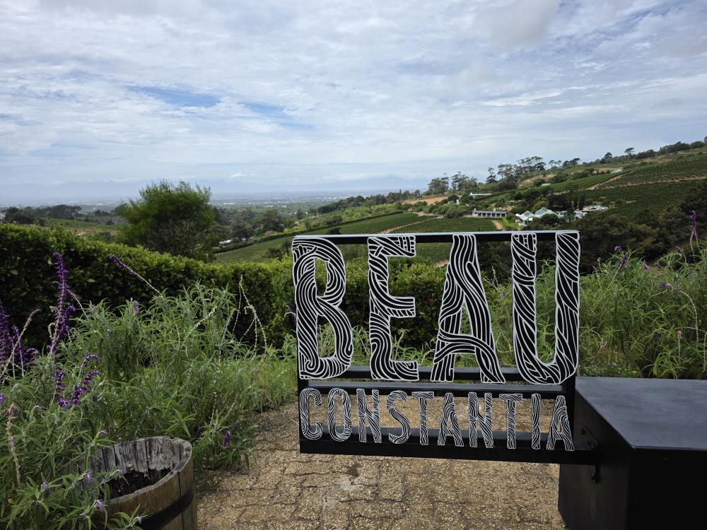 We arrive in Constantia right before 11am. Beau Constantia opens at 11, but our reservations are for 11:30, so we are hoping they will accommodate us. The vineyard is as pretty as it was 2 years ago, we are surrounding with vibrant green vines and beautiful long views on our walk up to the tasting room.